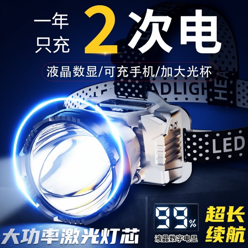 头灯2025新款强光充电超亮超长续航户外头戴式手电筒钓鱼专用矿灯