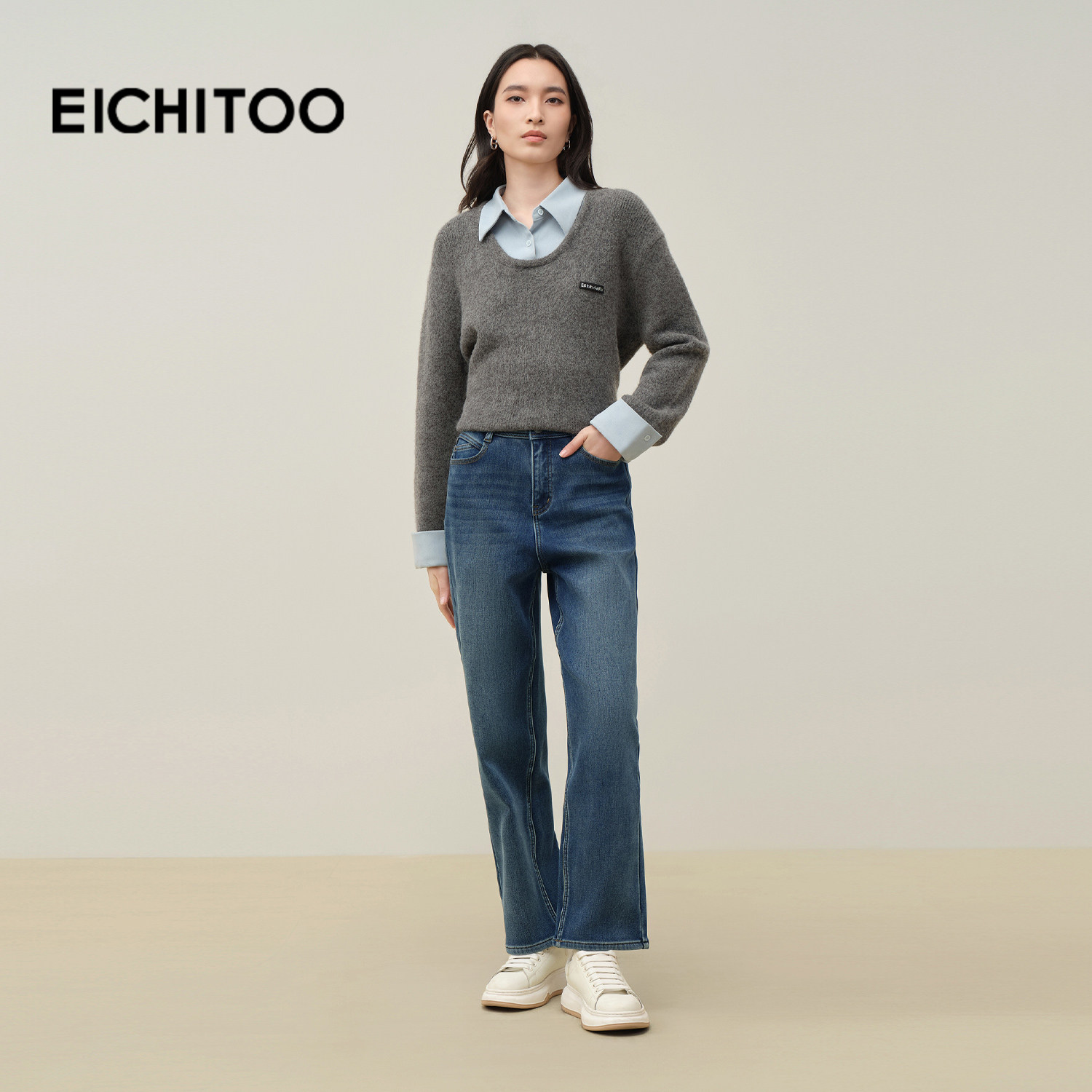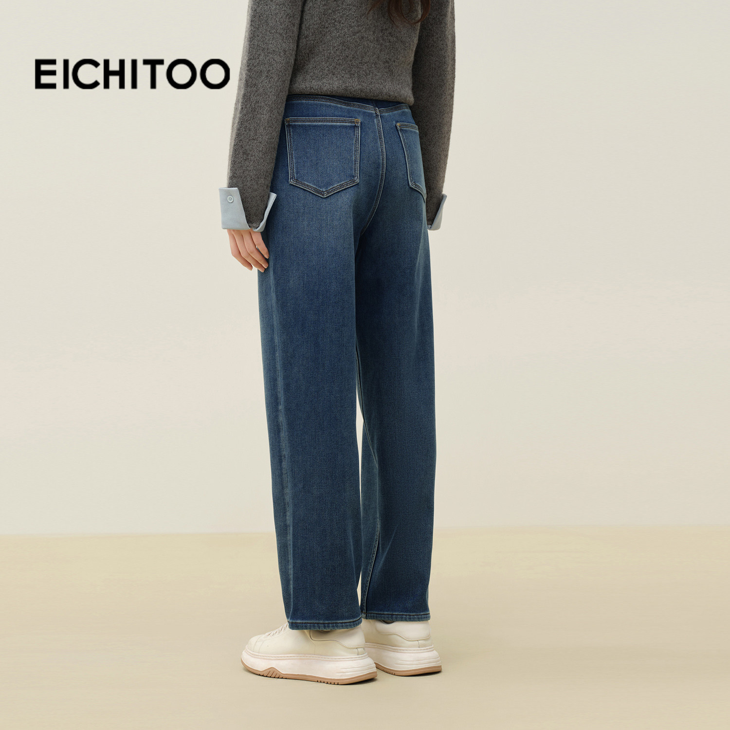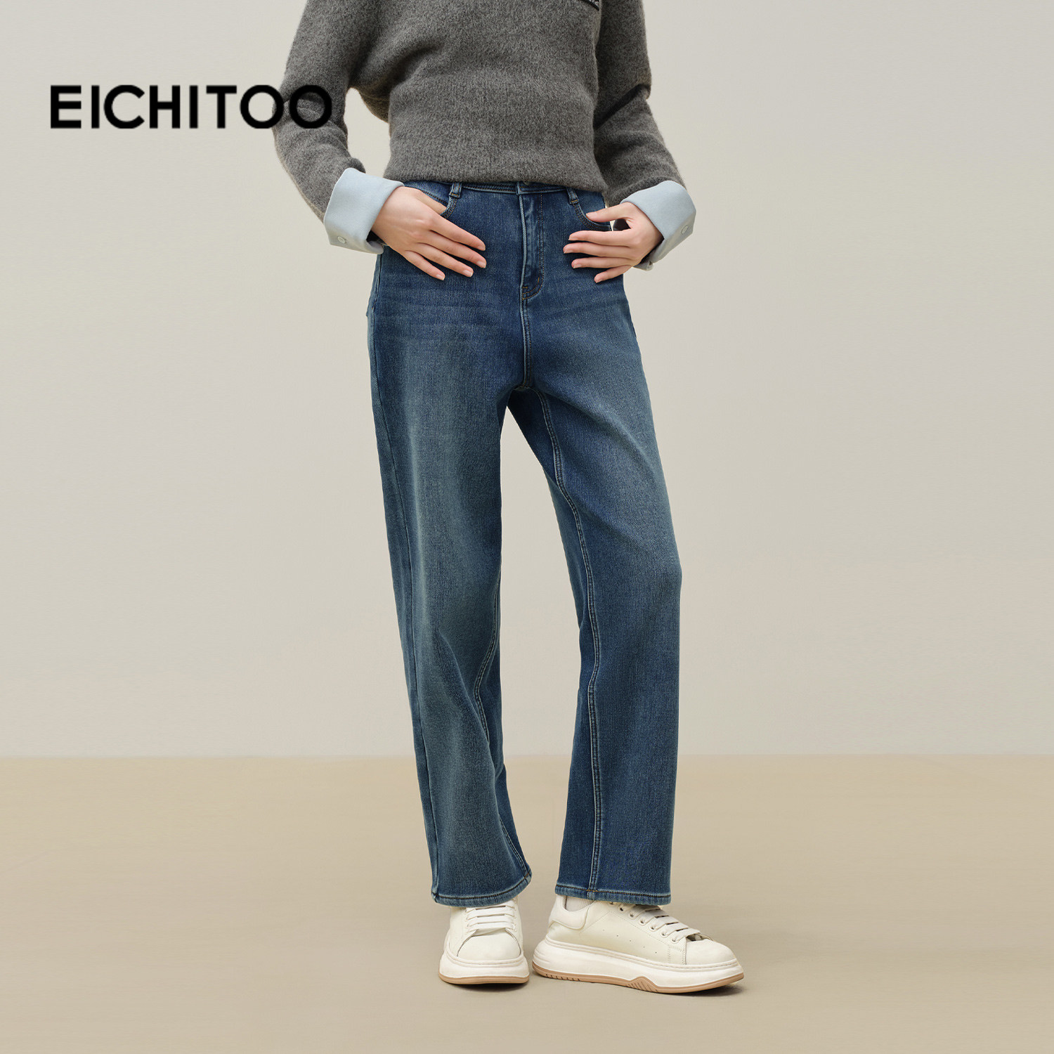 森柔牛仔|森马牛仔裤女磨毛长裤女士潮流秋休闲简约小直筒裤时尚