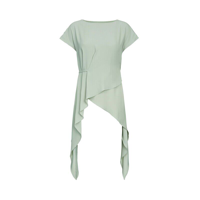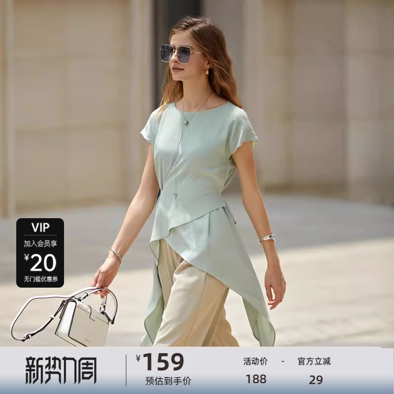sdeer圣迪奥女装圆领系带不规则雪纺短袖衬衫S232Z0440