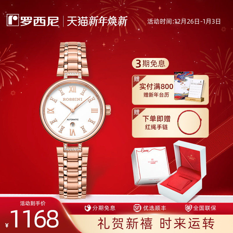 罗西尼旗舰手表女典美系列简约优雅气质防水机械女士腕表5230190