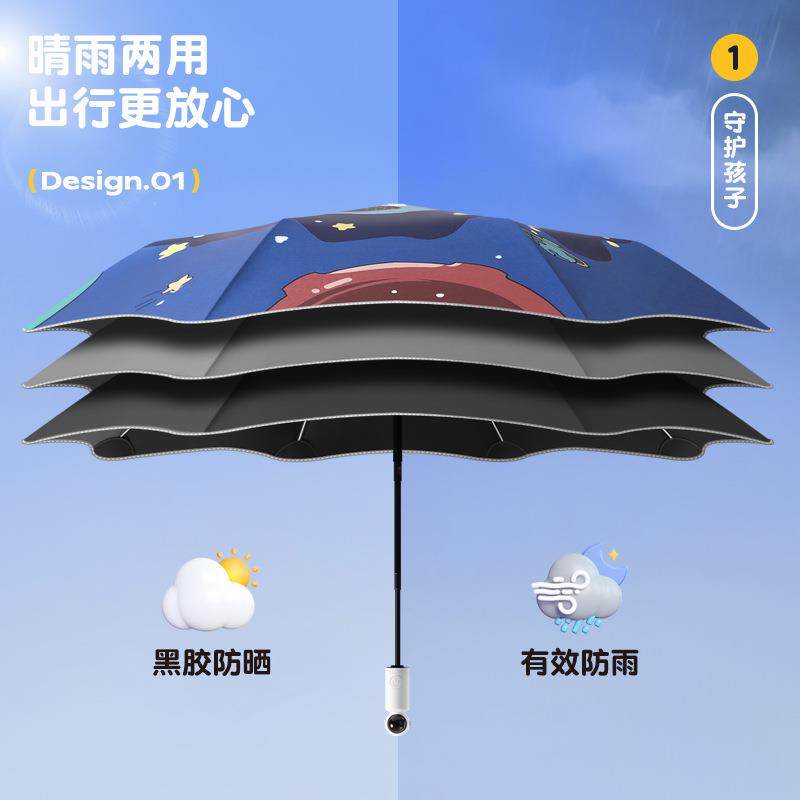 三折自动安全防回弹节节收儿童雨伞男孩小学生上学晴雨两用自动伞