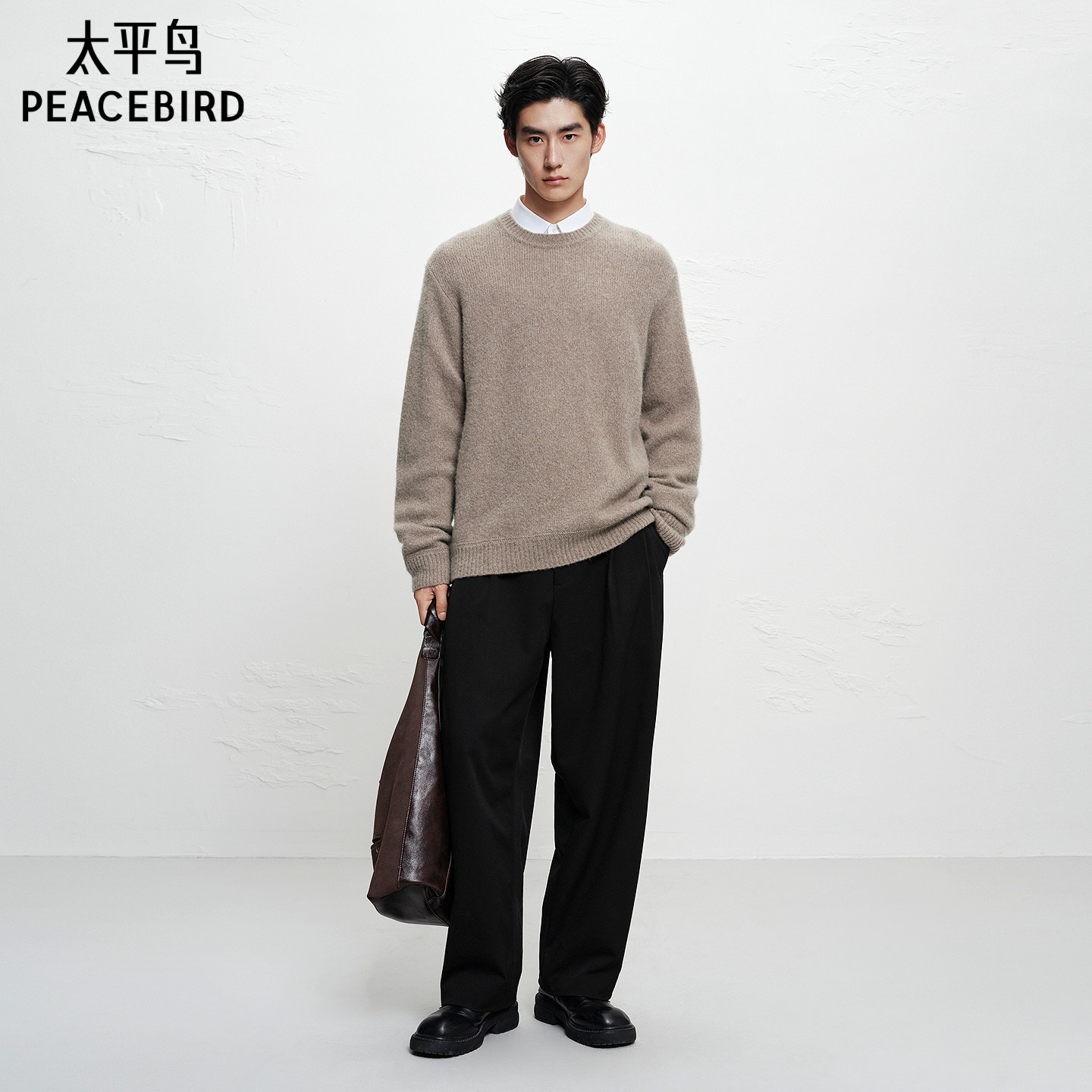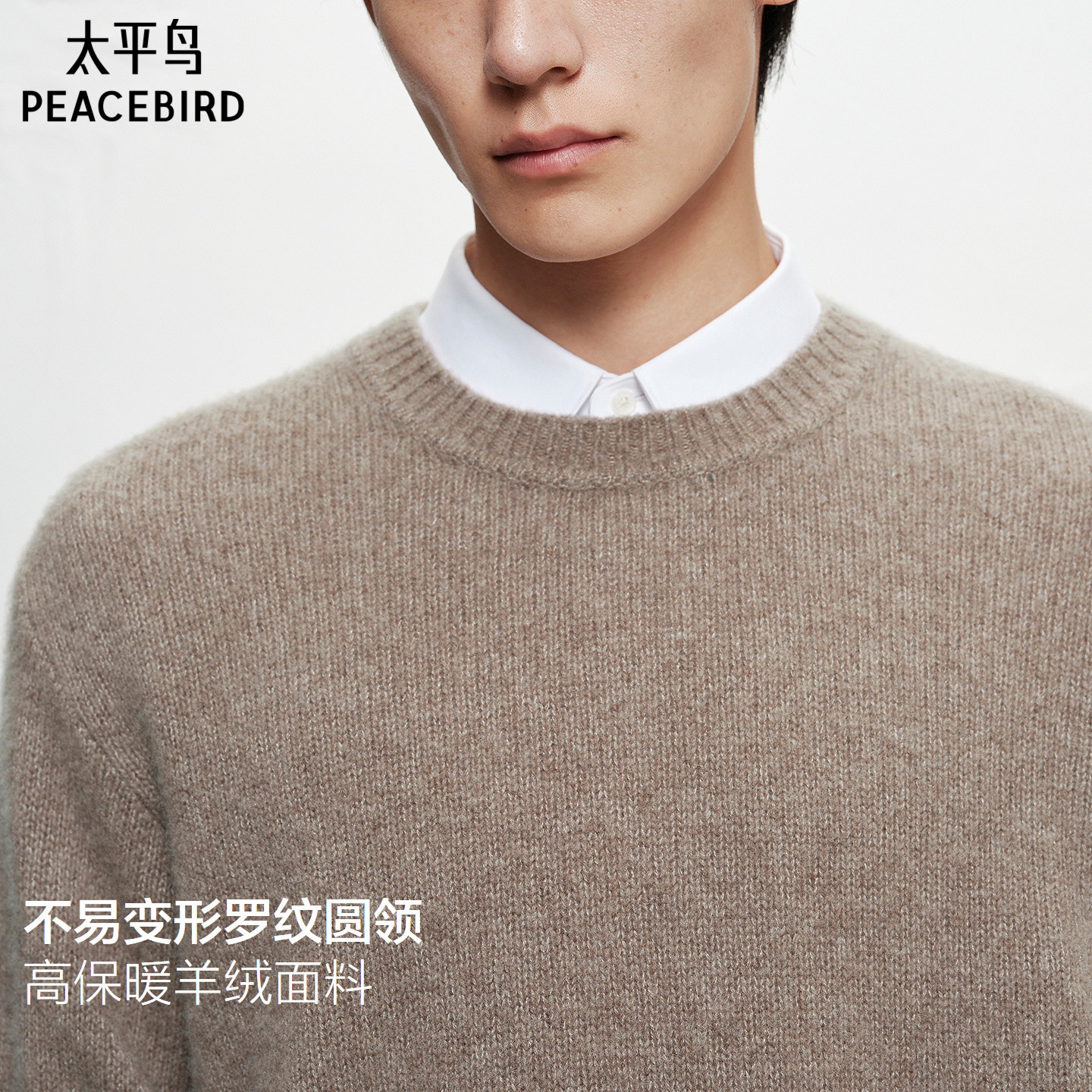 【商场同款】太平鸟男装保暖羊绒毛衫冬圆领羊毛针织衫B1EBF4B18