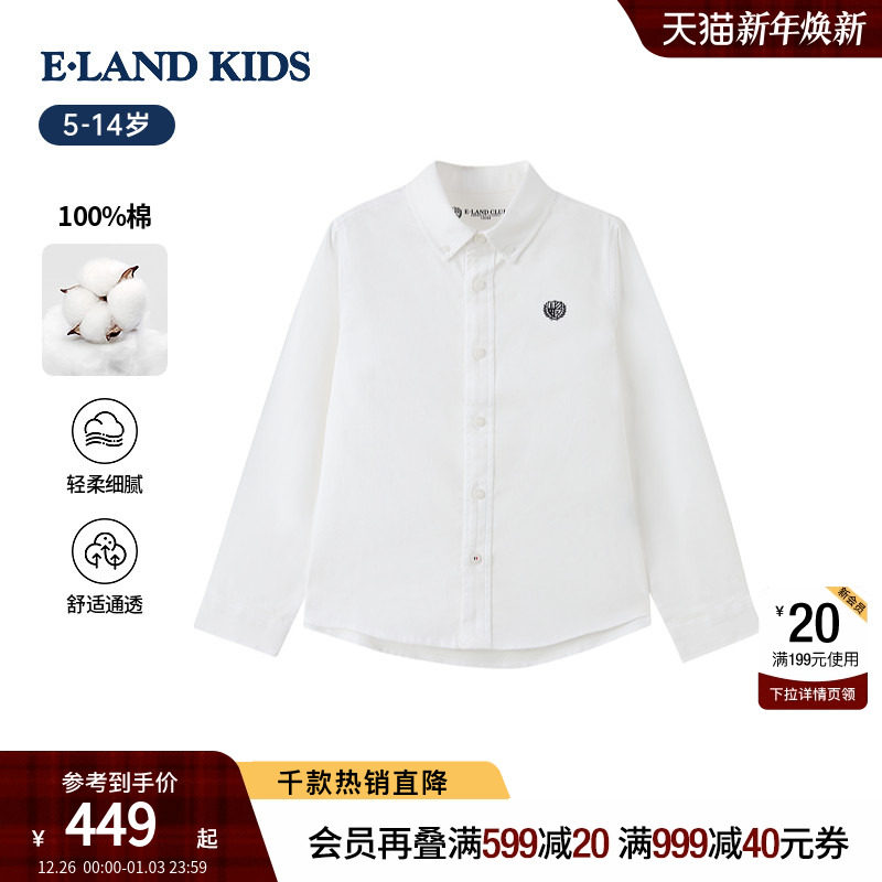 【100%棉】eland kids衣恋童装男童女童翻领衬衫26春季新品英伦风