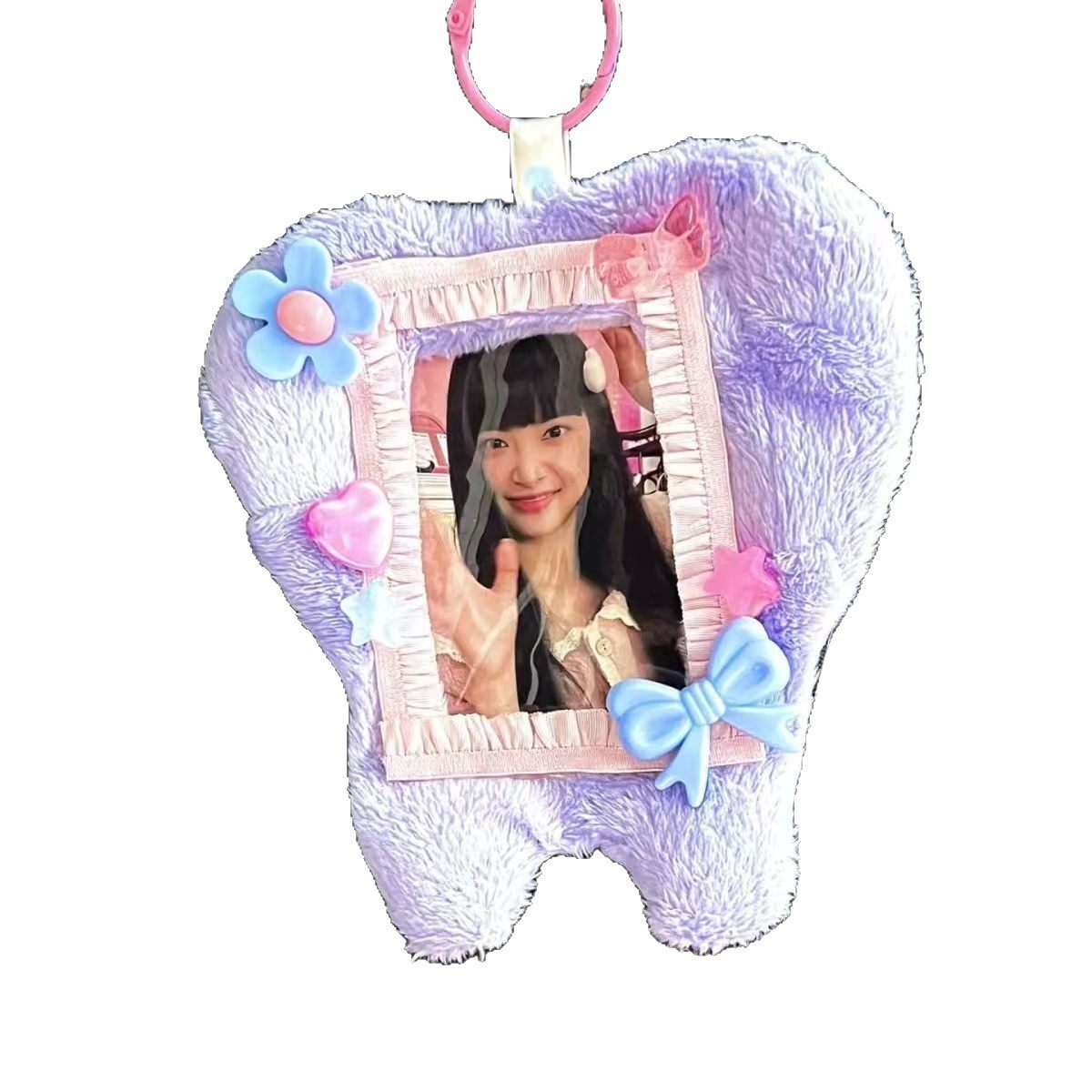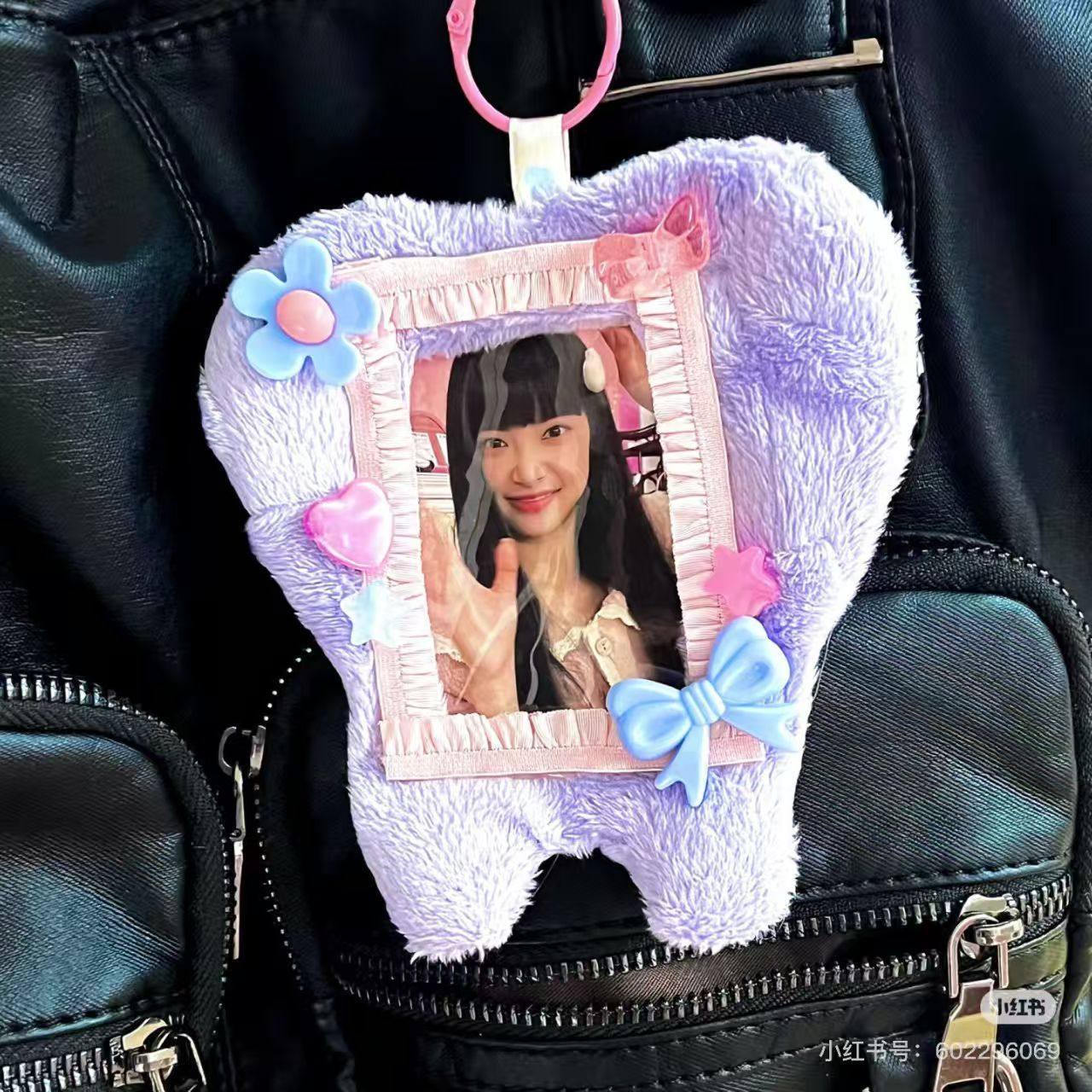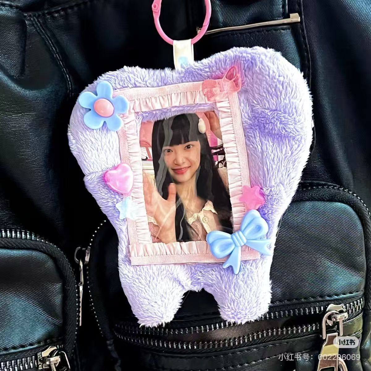 可爱小红书毛绒牙齿卡套追星公交寸小卡照片饭卡收纳保护套挂件带挂绳校牌工厂牌钥匙扣卡套一体