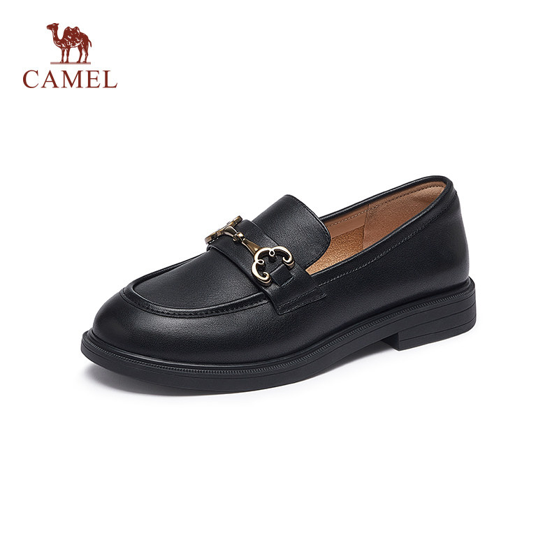 骆驼女鞋秋冬粗跟乐福鞋女真皮平底单鞋英伦风小皮鞋女