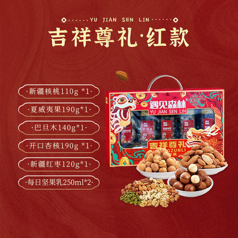 遇见森林新年送礼品健康坚果礼盒装混盒干果零食大礼包松鼠红款