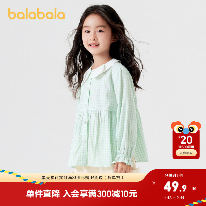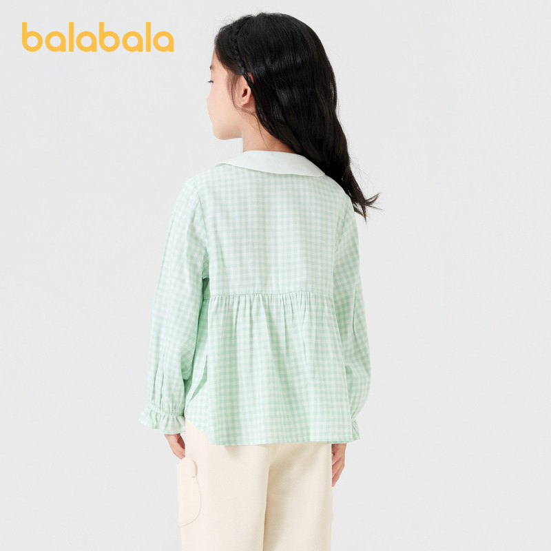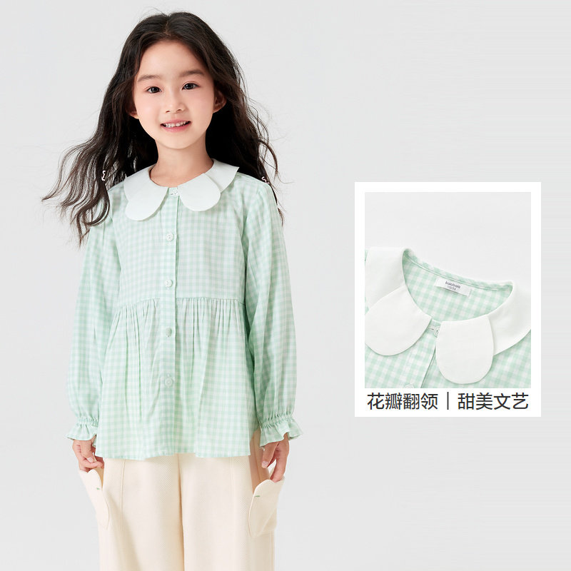巴拉巴拉童装儿童长袖衬衫女童秋装甜美可爱文艺格子上衣小童翻领