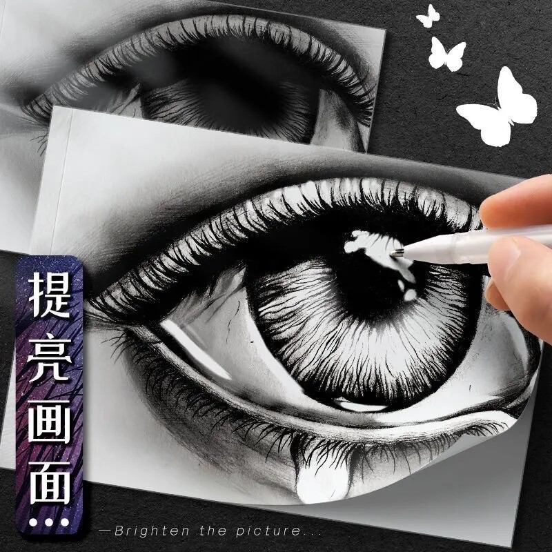 丙烯软头高光笔白色高光笔绘画高光白笔防水不掉色小学生素描提亮专用笔美术手绘涂鸦笔黑卡签字笔白色记号笔