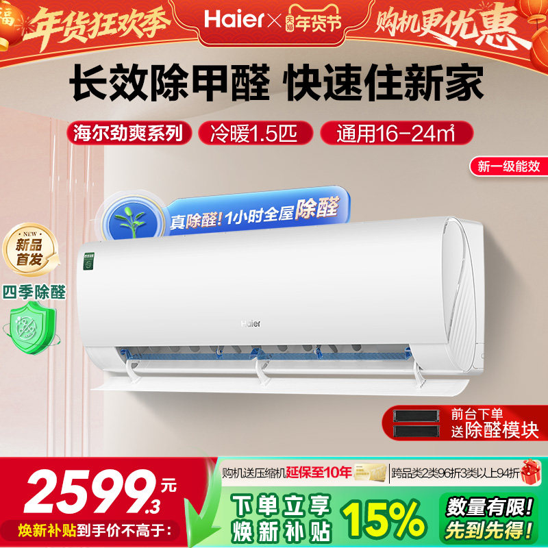 【除醛新品】海尔空调劲爽家用官方1.5匹新一级变频冷暖挂机35LGA