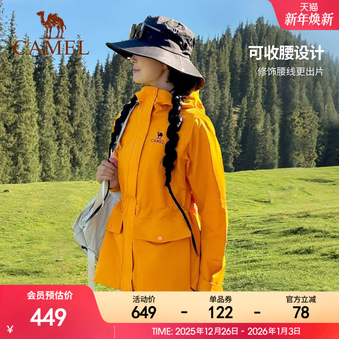 骆驼向日葵黄色户外冲锋衣女款三合一新款收腰防风防水风衣外套男