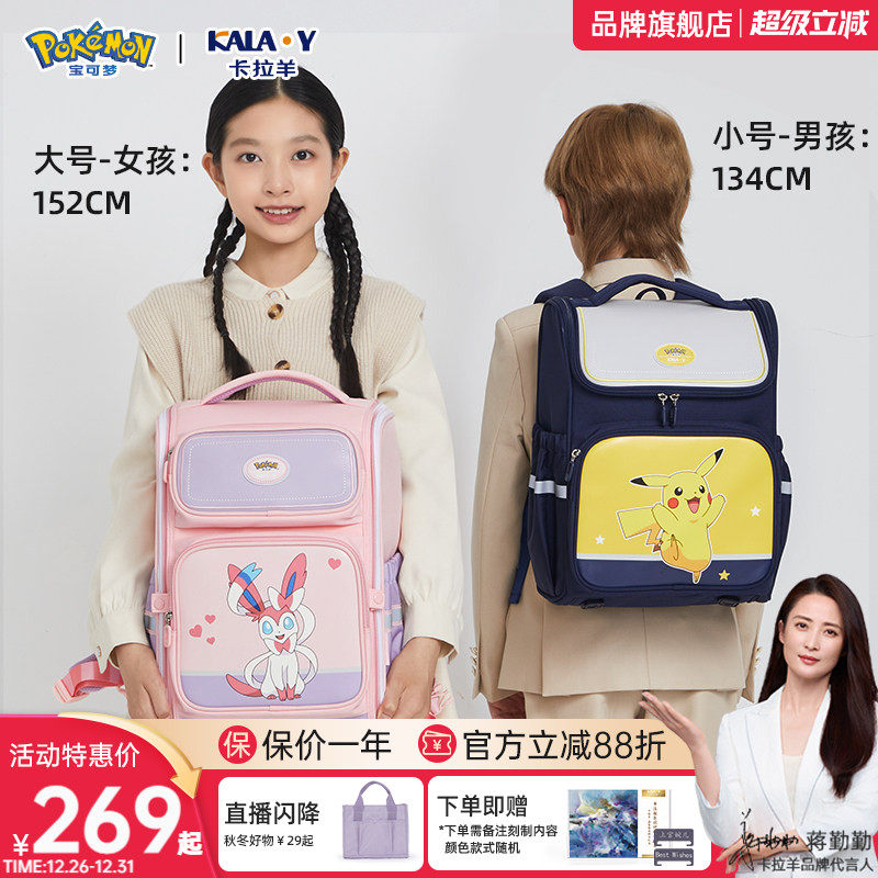 【宝可梦联名款】卡拉羊1-3-6年级小学生男大嘴书包减负女生大容量高颜值幼升小送礼