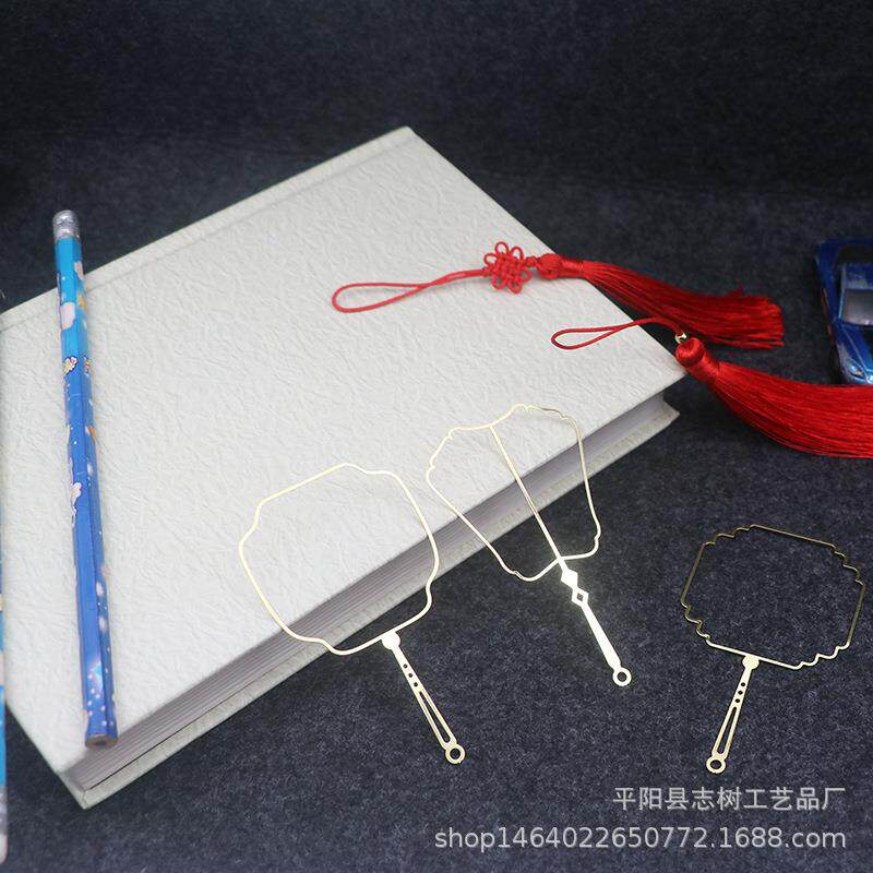 扇子骨架空白书签diy精美古典刺绣创意礼物国风金属团扇外框书签