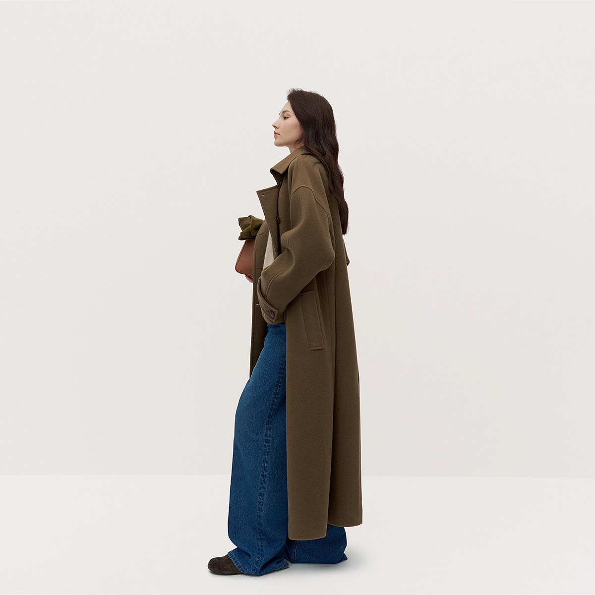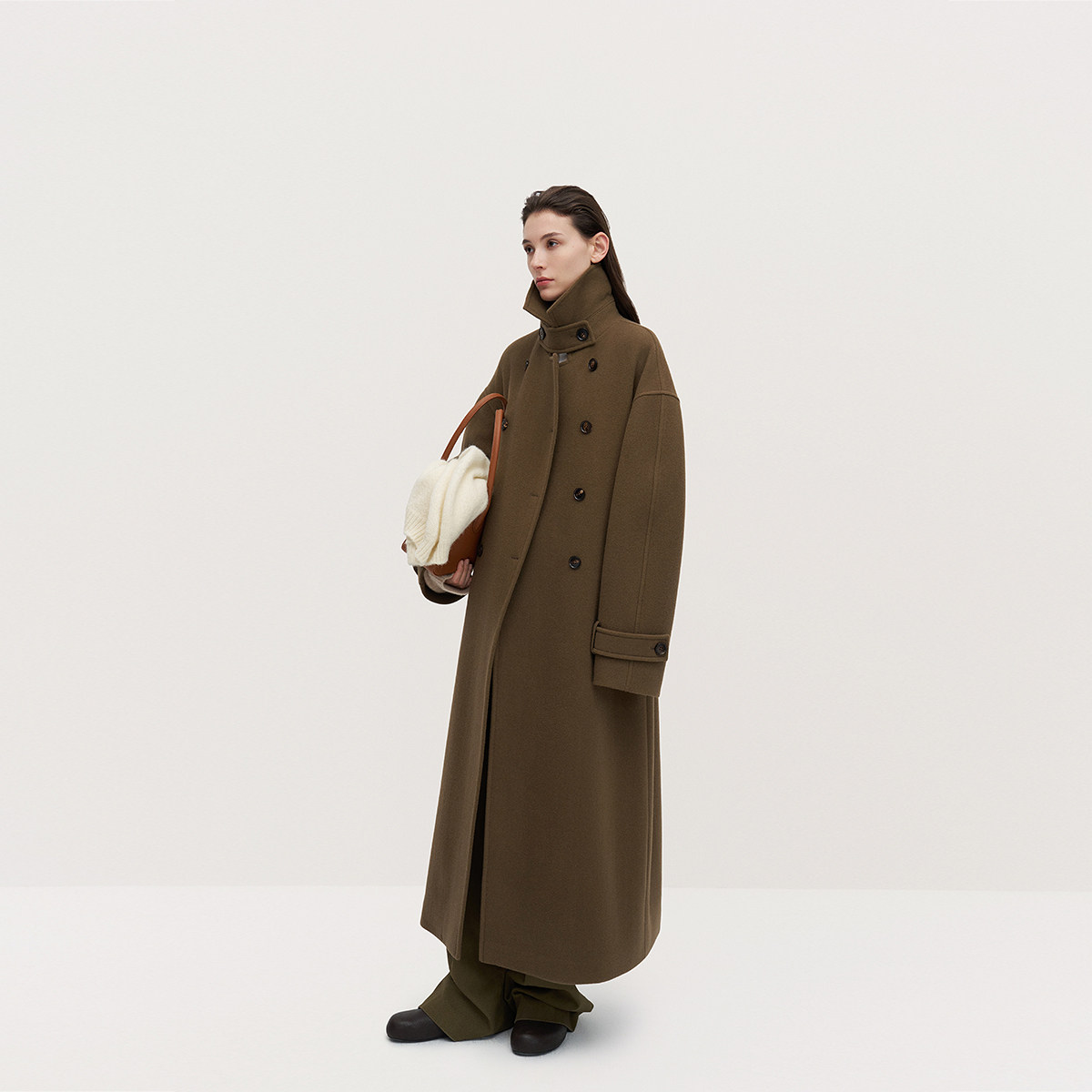 【季末折扣】欧时力 澳大利亚羊毛呢大衣排扣外套配领袢流行冬新