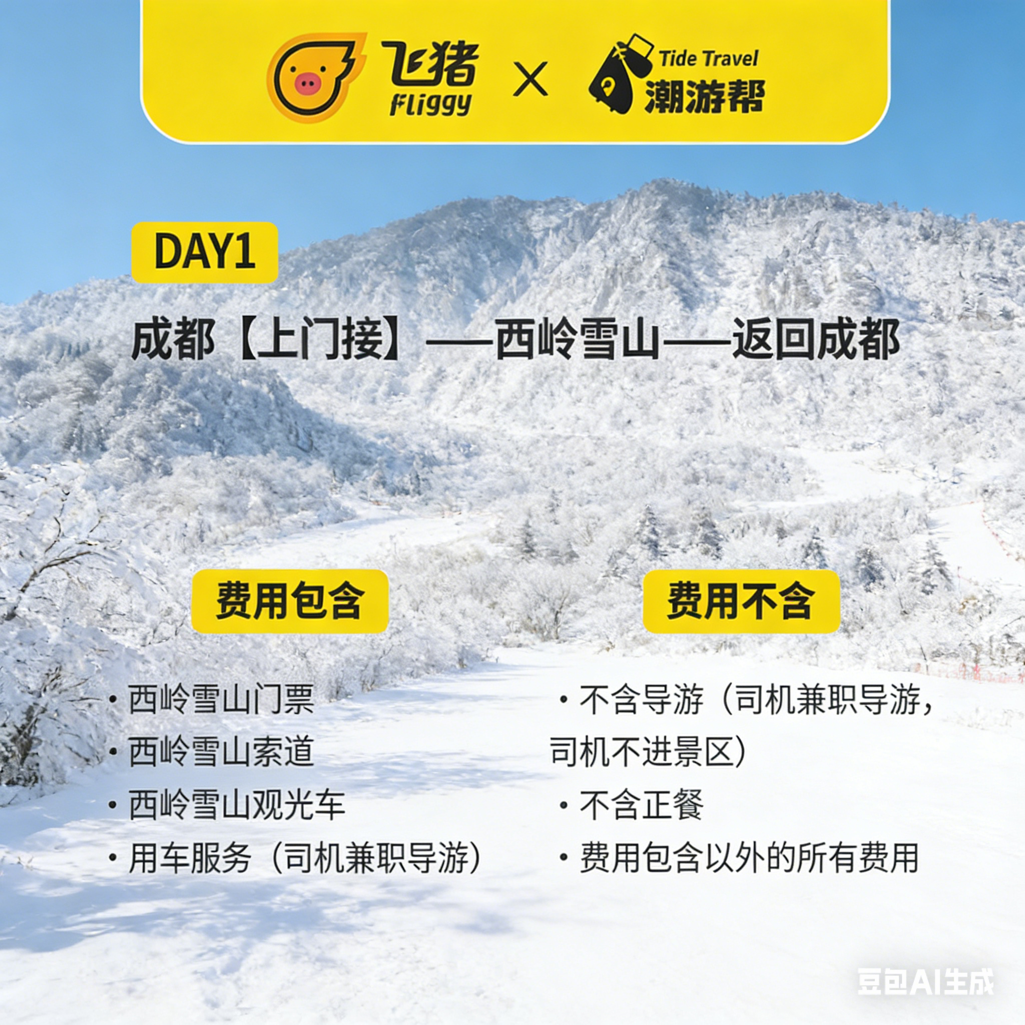 成都周边纯玩旅游西岭雪山一日游2-8人小团包含西岭雪山门票