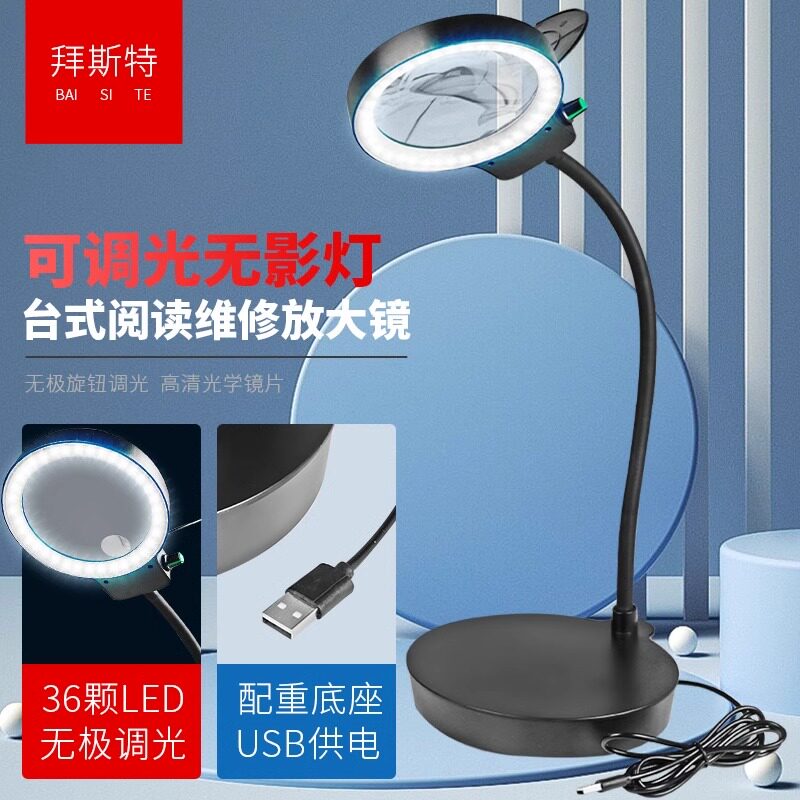 台式放大镜带led灯维修纹绣高清20倍老人阅读10倍手机电子路板用