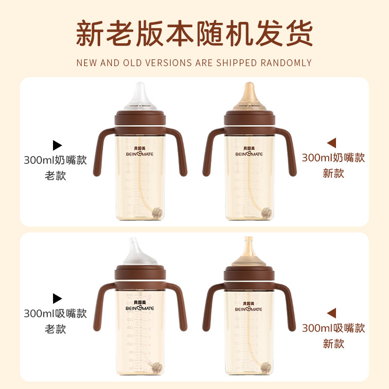 贝因美翻盖奶瓶PPSU奶瓶婴儿宝宝吸管奶瓶6个月一岁2岁以上防胀气