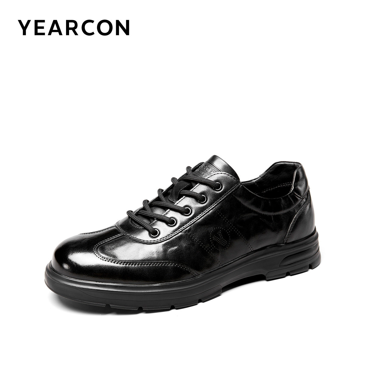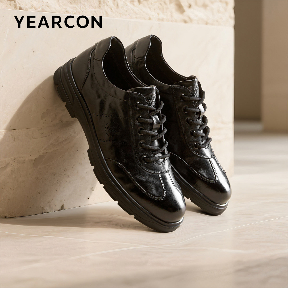 【小牛皮】青润chioryn袋鼠鞋男黑色真皮增高厚底休闲通勤风皮鞋