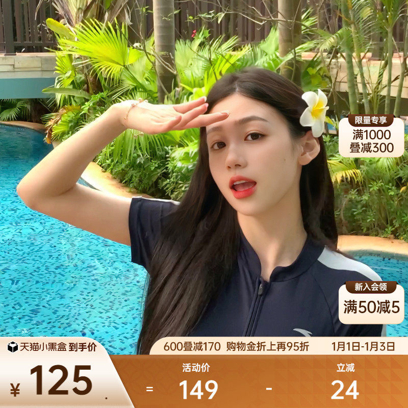 安踏小蛮腰丨女连体泳衣专业秋海边游泳运动显瘦修身温泉泳裙正品