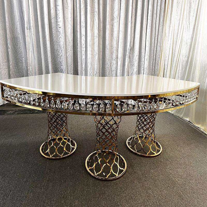 婚庆桌酒店金属不锈钢镂空彩光大理石桌面餐桌厂家场地布置