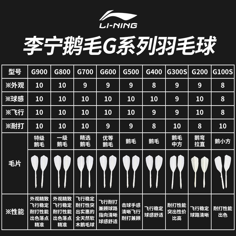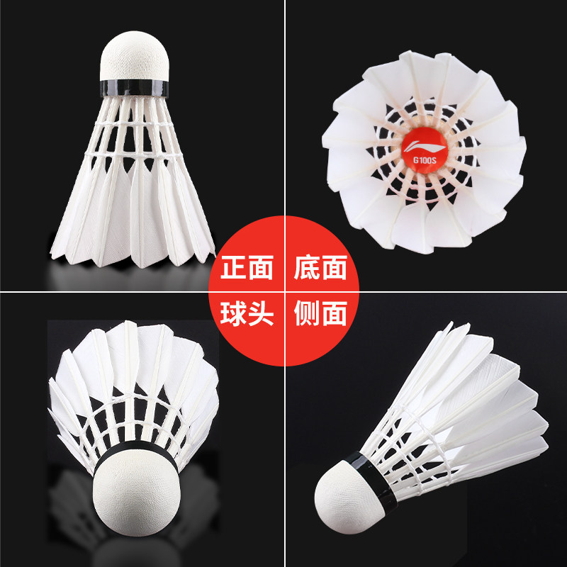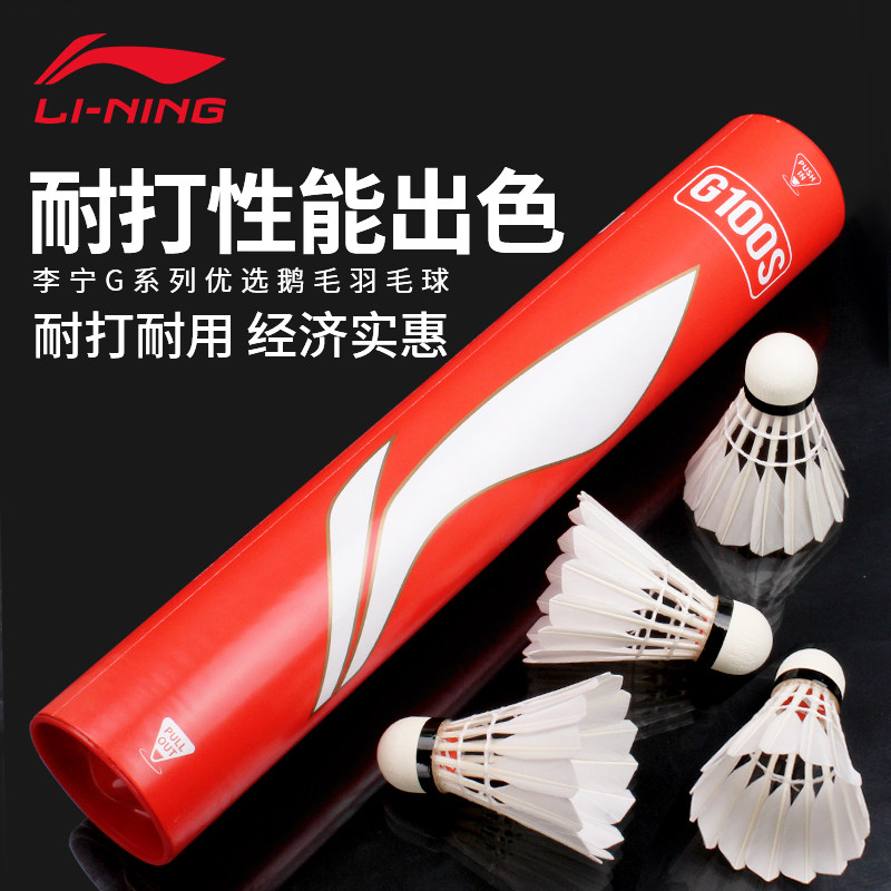李宁羽毛球G100耐打正品12只装室内外耐用专业训练比赛高原鹅毛球