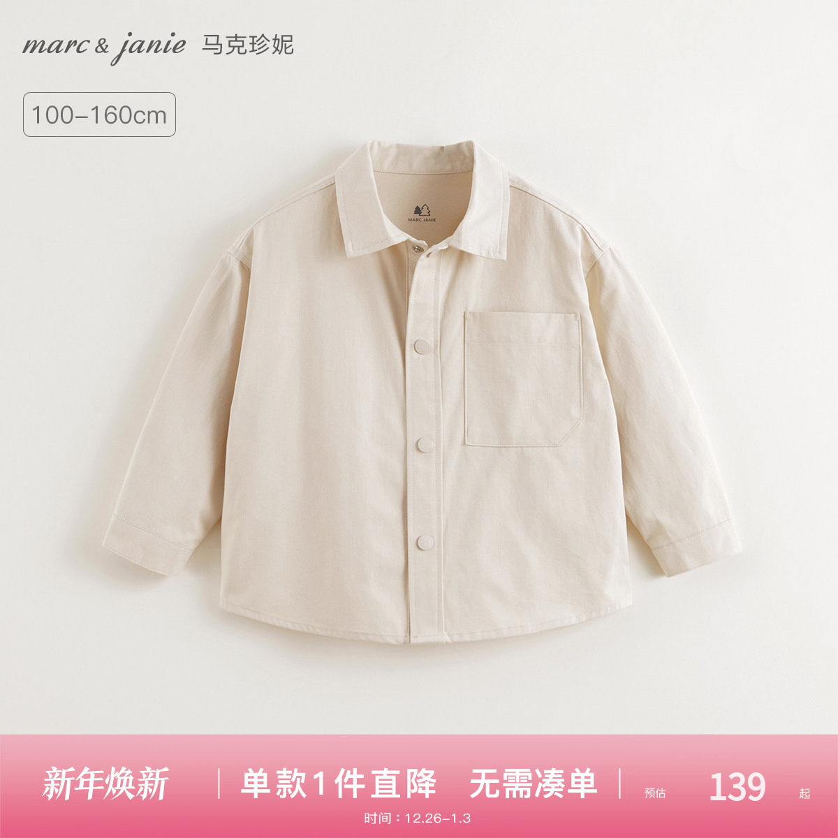 马克珍妮男童城市户外翻领衬衫儿童纯棉衬衣2025年春装新款250102