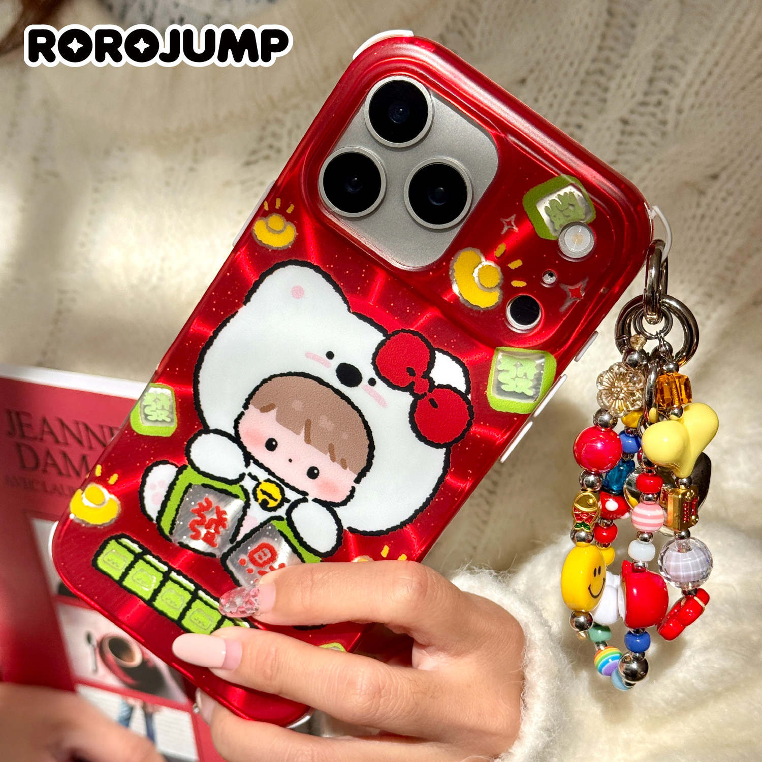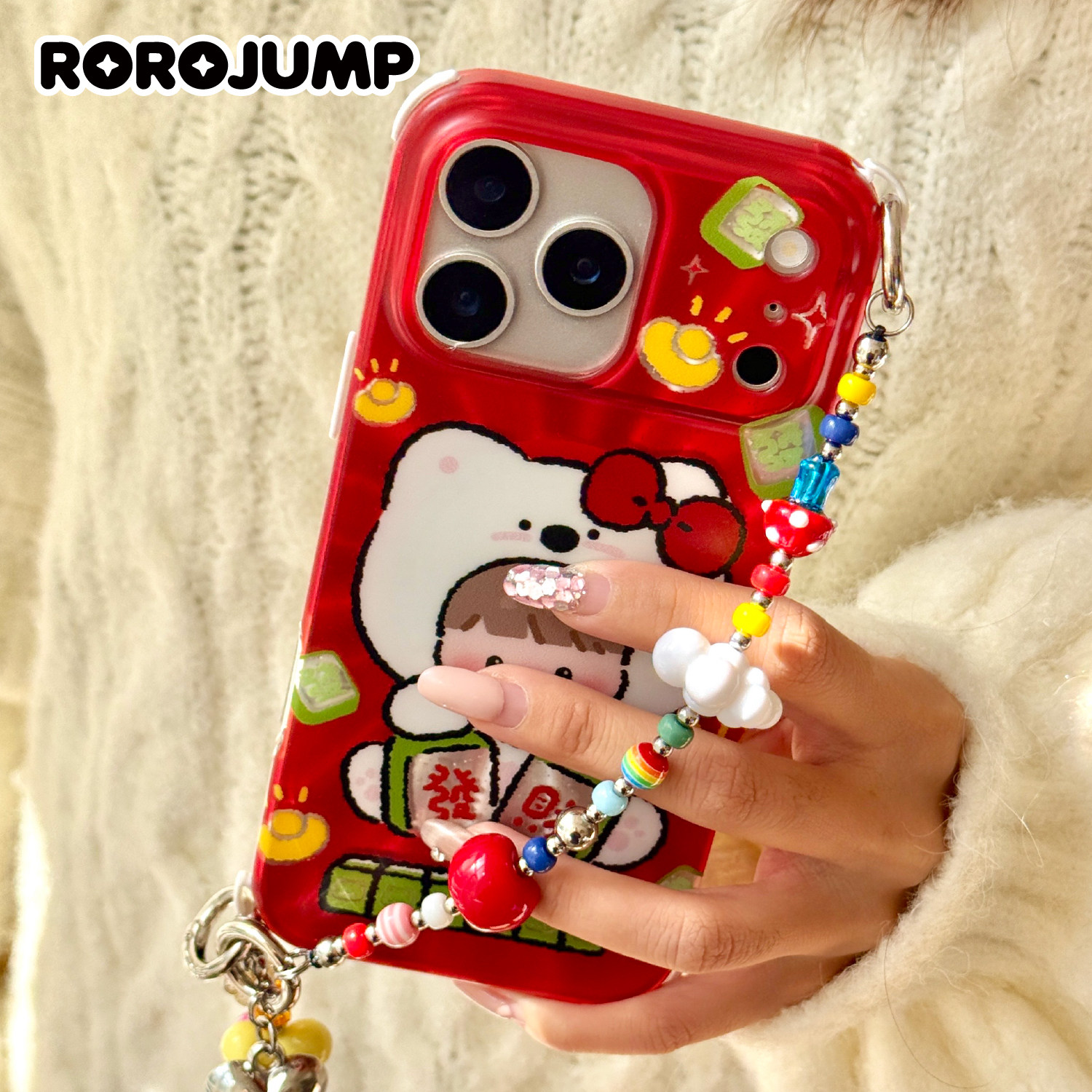 肉肉酱发财小狗麻将磁吸手机挂链珍珠串珠挂绳便携独特挂绳附带垫片百搭