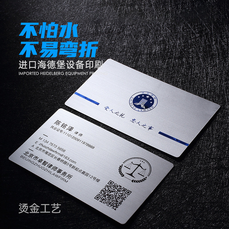名片制作 拉丝银pvc PVC名片 免费设计 烫金名片 防水J防折 律师