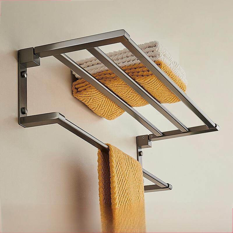 枪灰色全铜浴巾架卫生间毛巾架壁挂浴室置物架高端酒店五金挂件