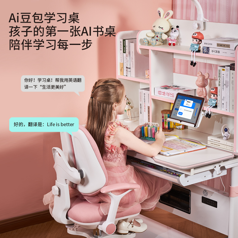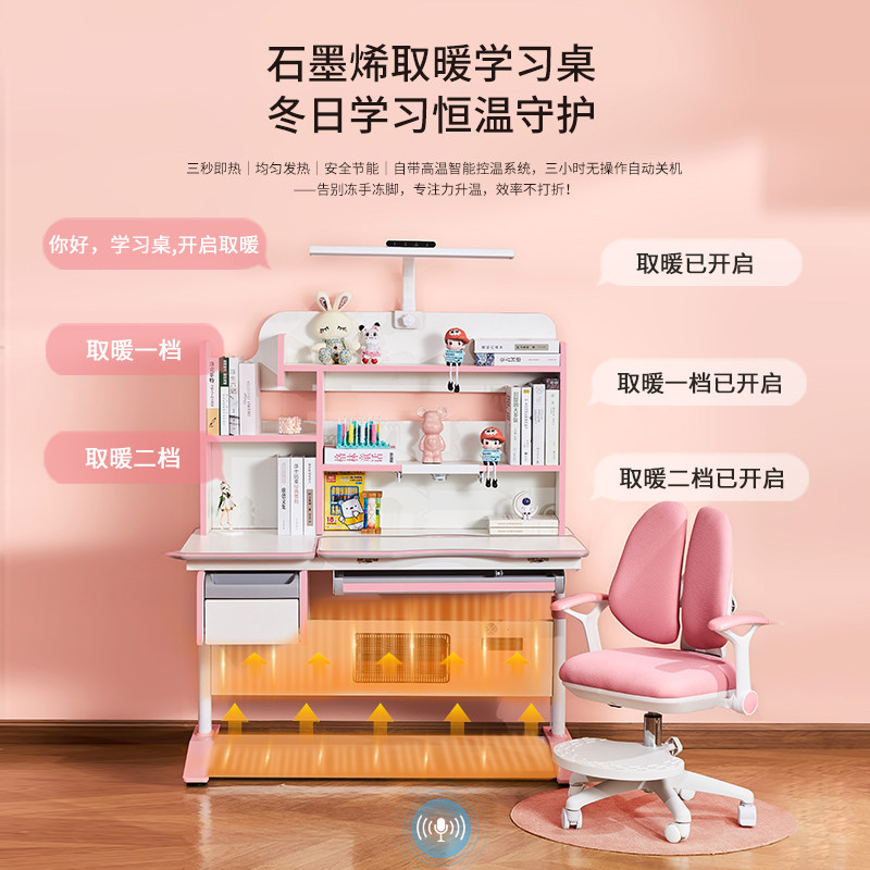 夏新2025新款取暖烤火桌ai儿童学习桌升降电动带书架暖桌椅子写字