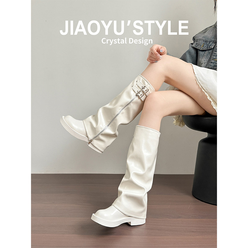 真皮~骄屿增高长筒靴2025新款辣妹骑士靴裤管靴女高跟白色黑色