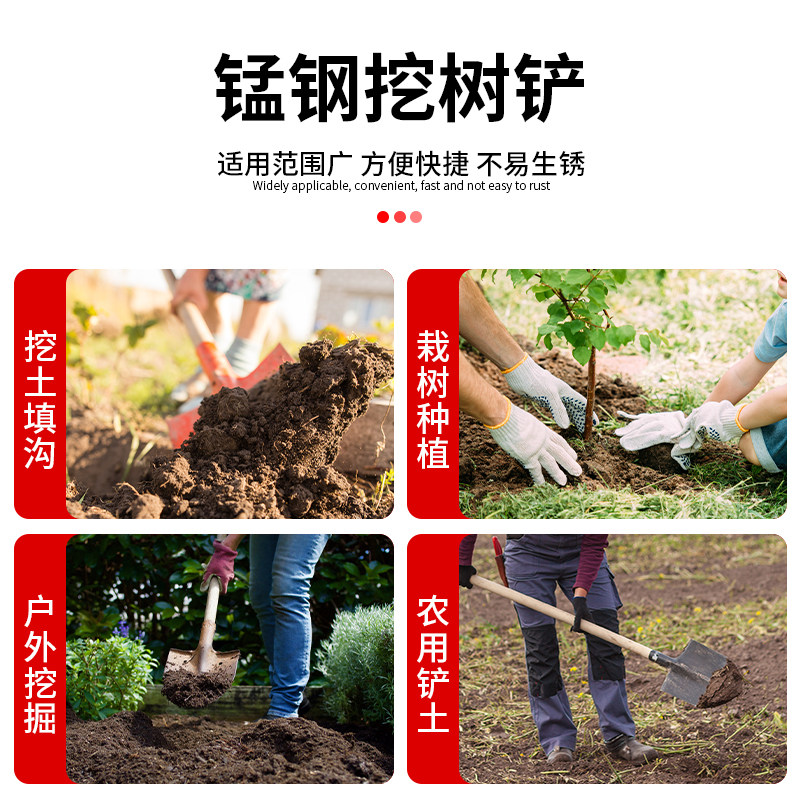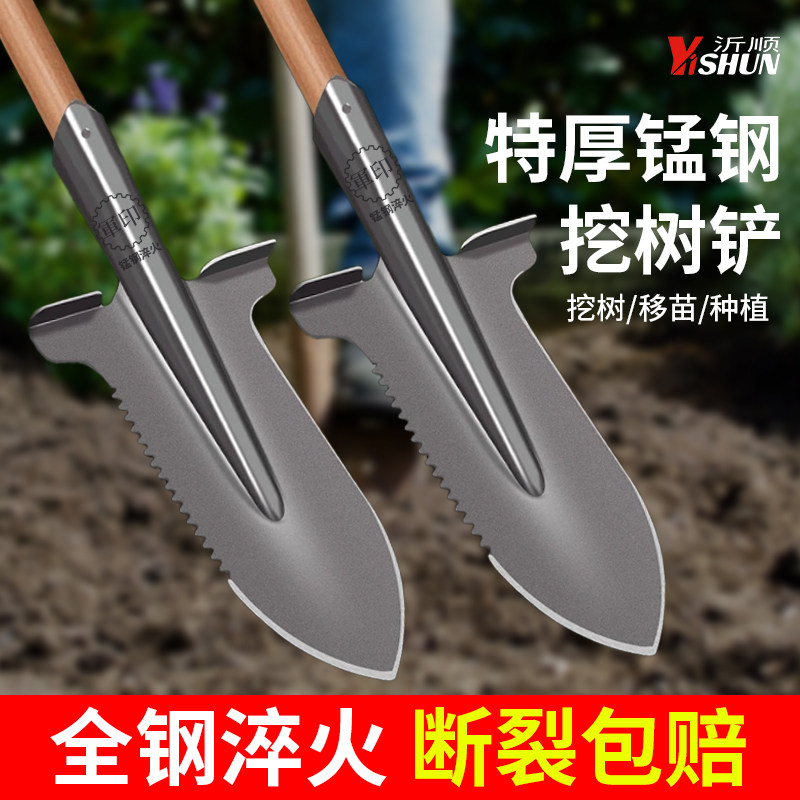 钢锹锰钢加厚家用种菜铁锨户外挖树工具大号农用挖土坑圆铲钢锨头