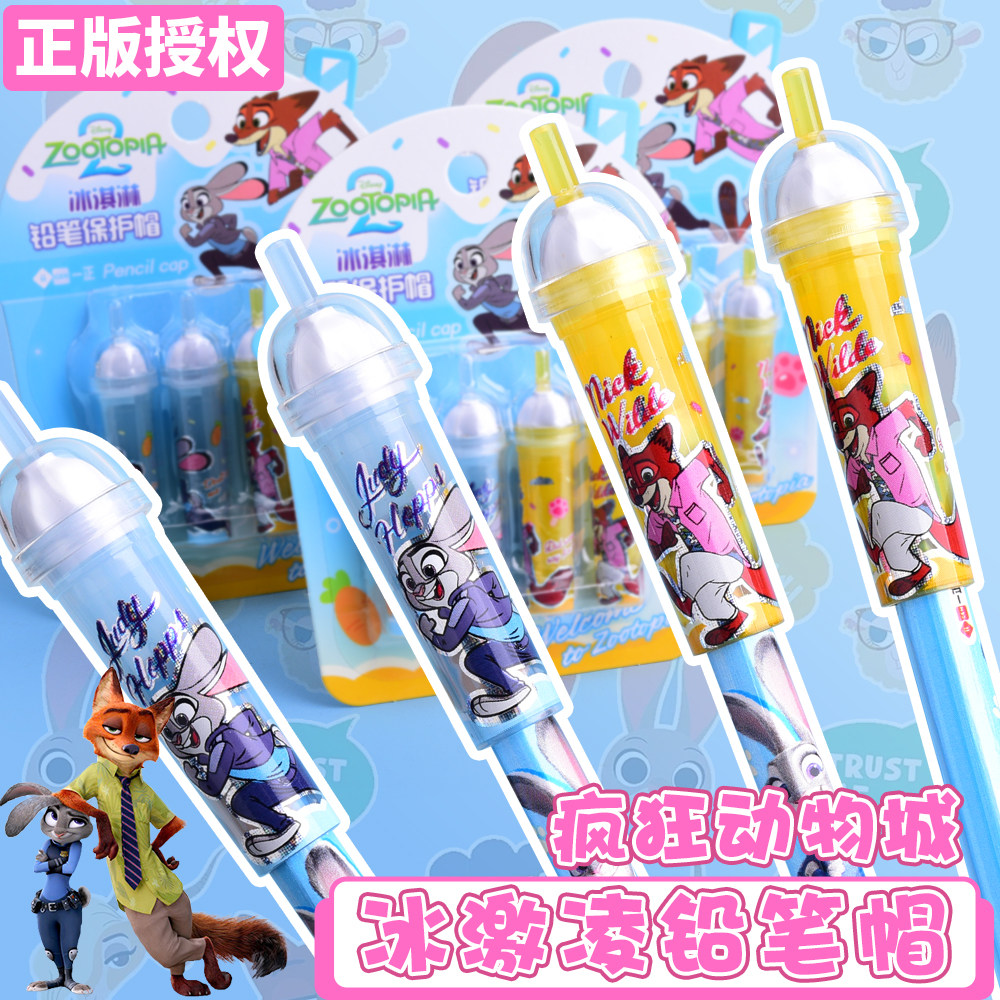 正版疯狂动物城铅笔帽冰淇淋笔帽高颜值铅笔保护套幼儿园小学生一年级铅笔延长器可爱卡通动漫笔盖周边文具