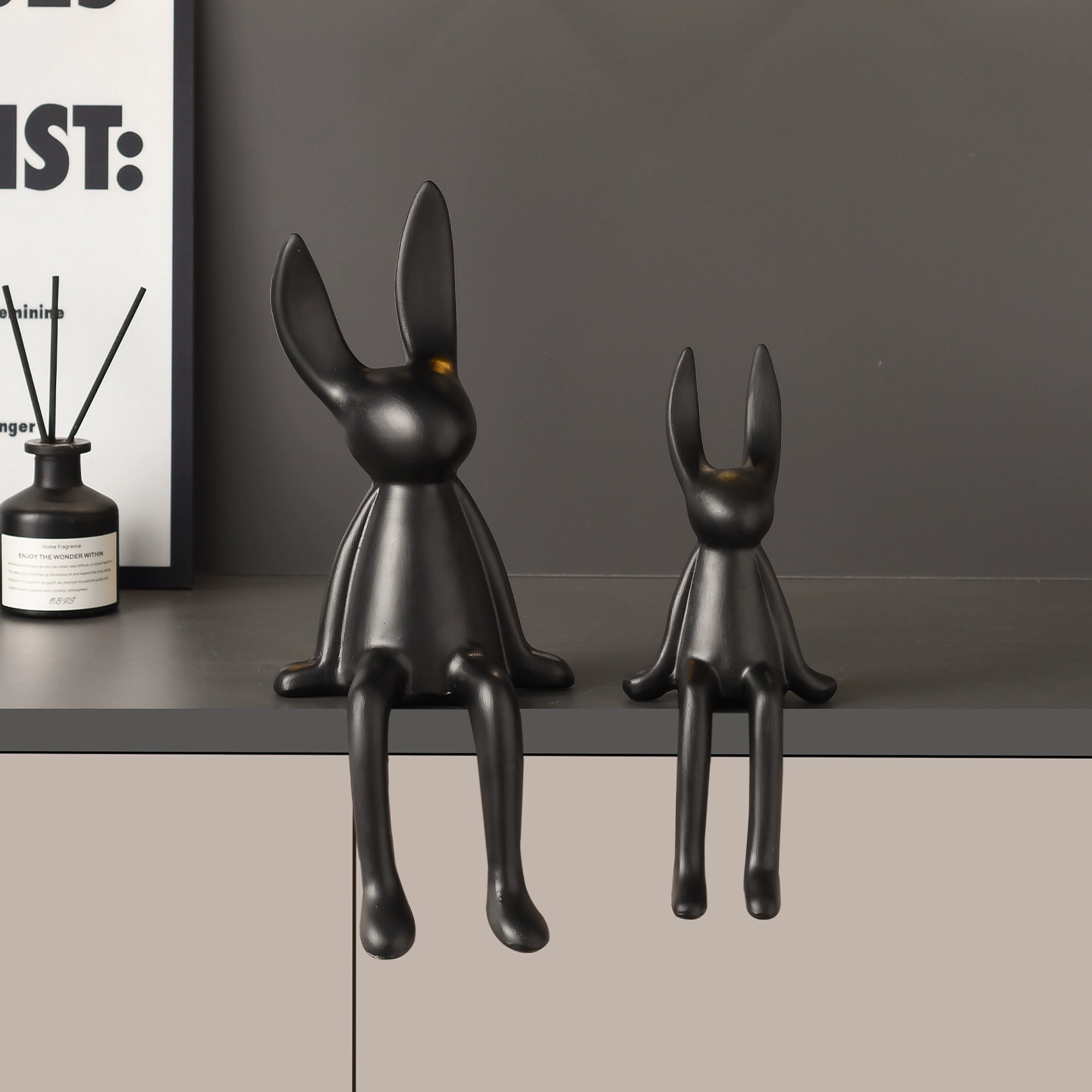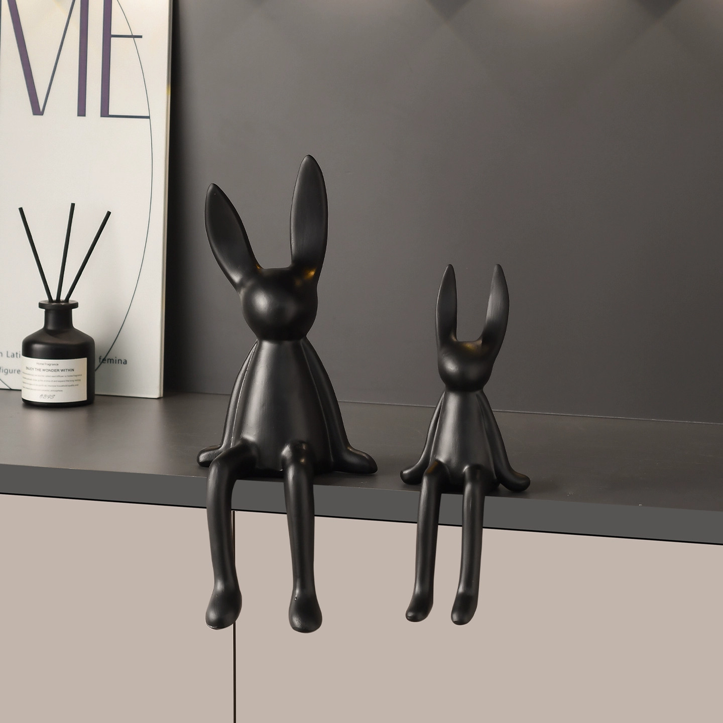 北欧风哑光陶瓷长耳兔摆件客厅酒柜玄关摆件工艺品家居简约装饰品