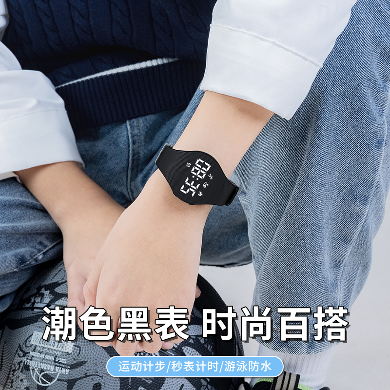 电子手表男初高中学生女无声震动闹钟静音儿童运动只看时间考试环