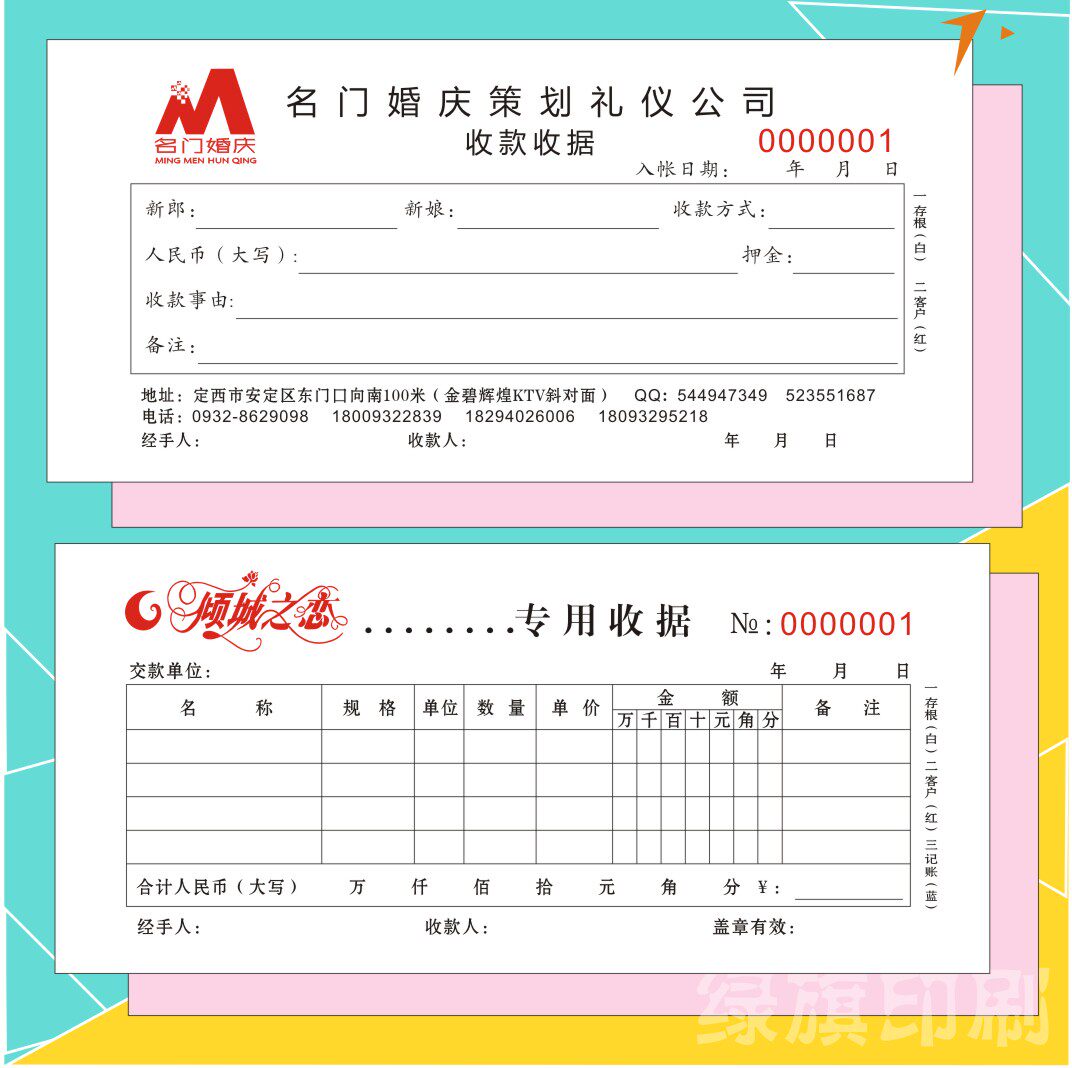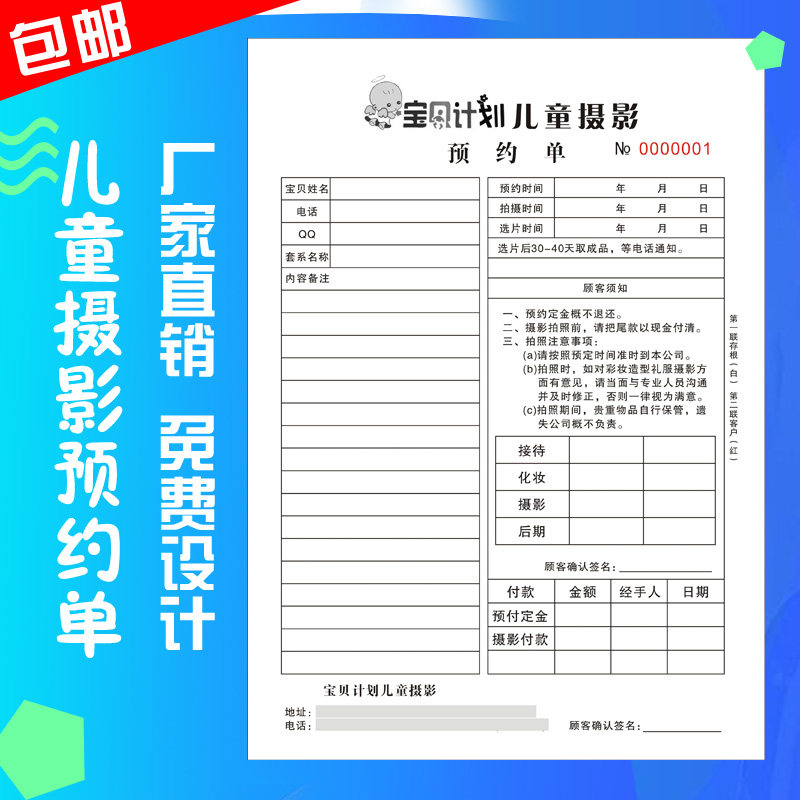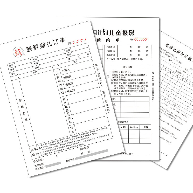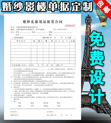 婚纱店开单本定制礼服租赁单据化妆彩妆跟妆押金单据影楼拍摄收据