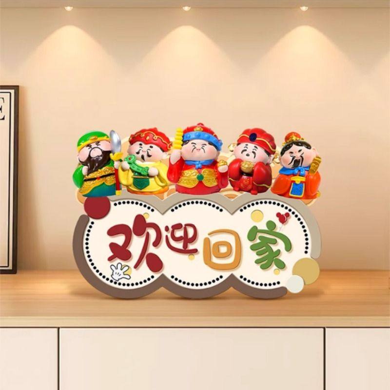 欢迎回家入户玄关摆台画创意五路财神客厅电视柜摆件高级感装饰品