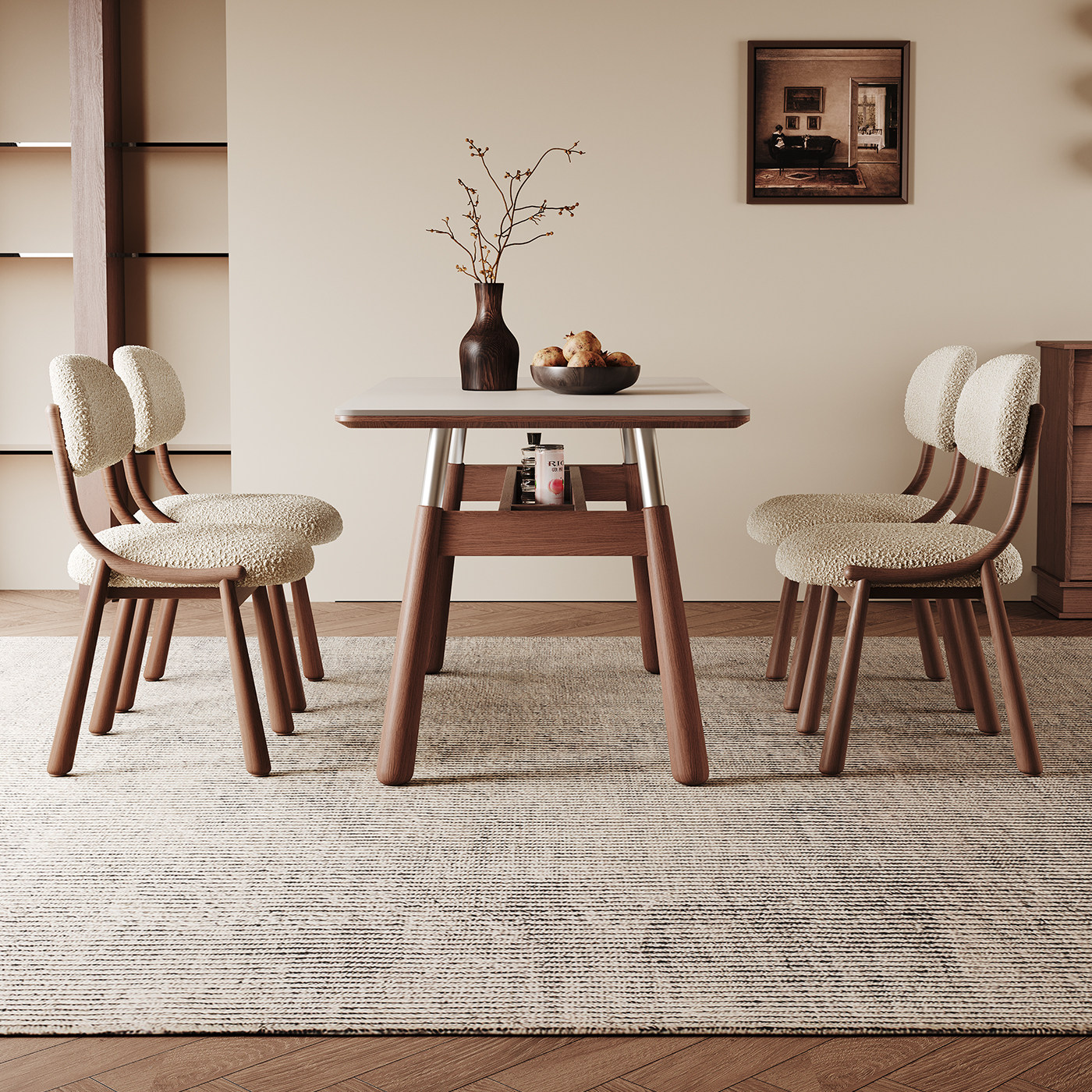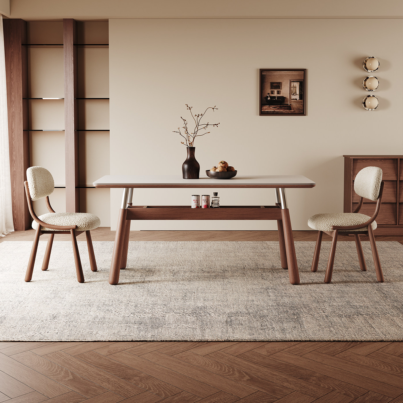 岩板餐桌2025新款轻奢高级感包豪斯中古家用小户型不锈钢实木餐桌