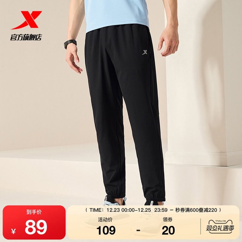 特步运动长裤男2025春秋官方速干透气梭织运动裤休闲训练健身长裤