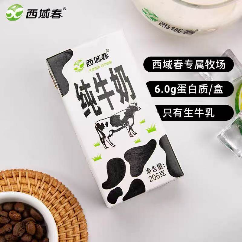 西域春纯牛奶新疆奶源整箱206克*20盒利乐砖全脂营养早餐生牛乳