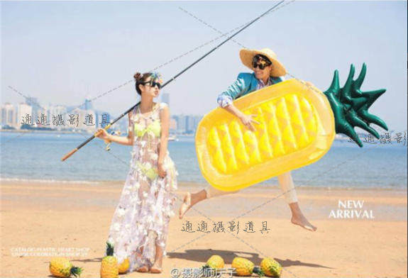 海景创意婚纱照三亚海边拍照道具个性菠萝充气垫水上水床浮排道具