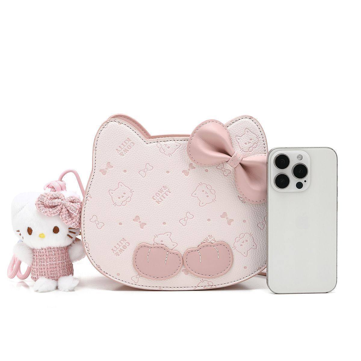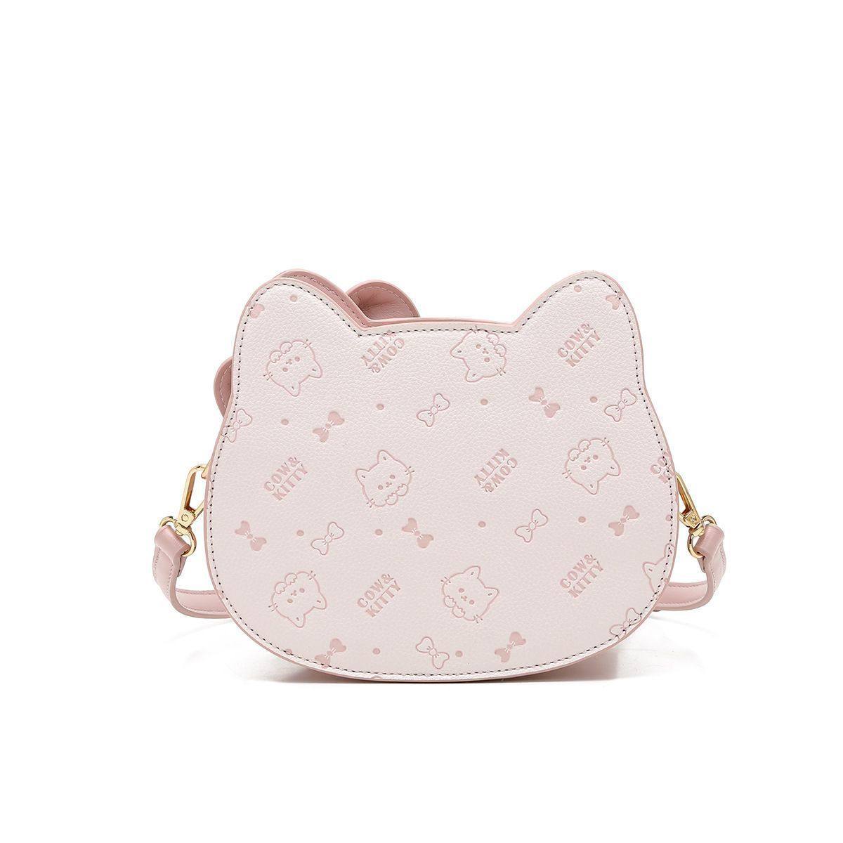 包包女夏韩国蝴蝶结芭蕾风马鞍包多巴胺粉色Kitty猫斜挎单肩包