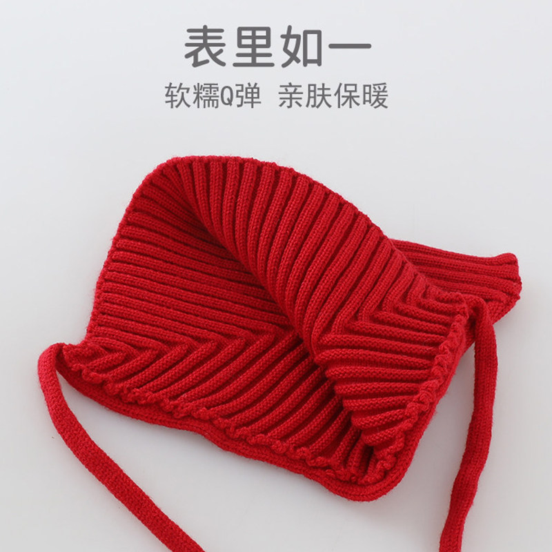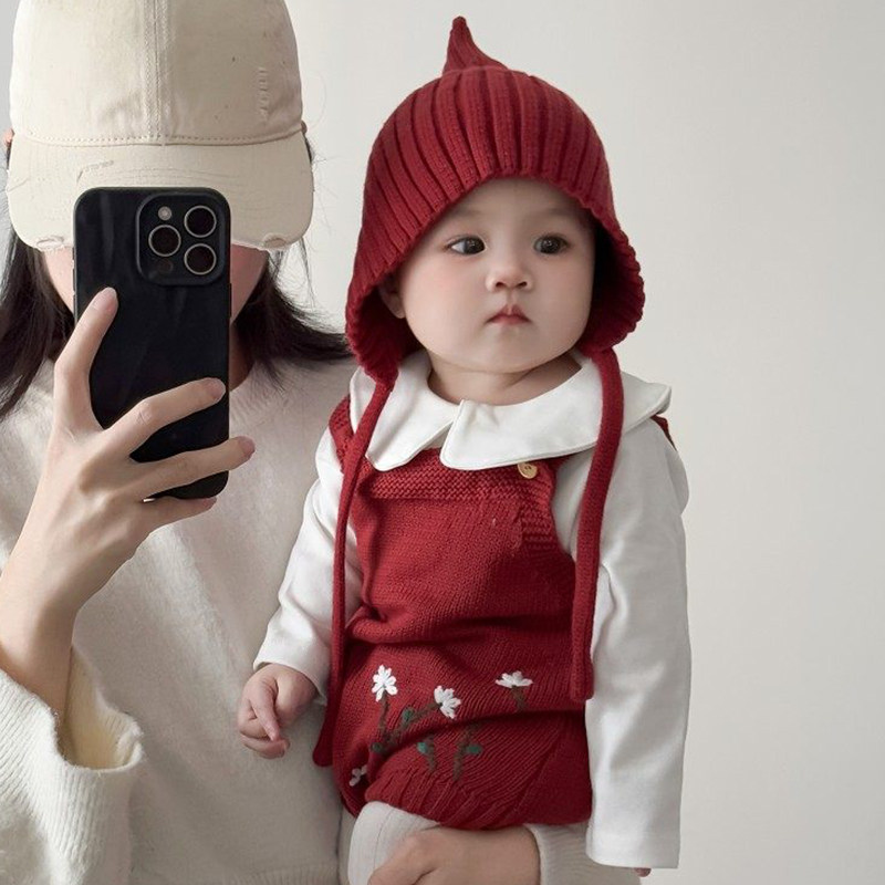 婴儿红色帽子宝宝精灵帽秋冬款韩版新年针织冬季小月龄女童护耳帽