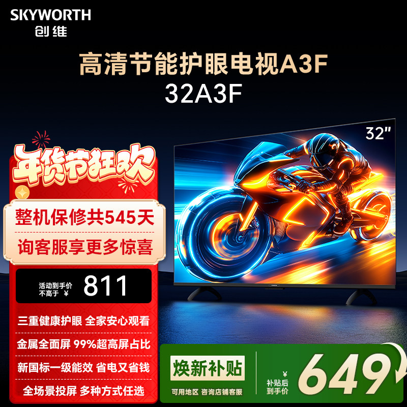 创维A3F 32英寸三重硬件护眼卧室老人电视机液晶屏幕官方官旗舰店