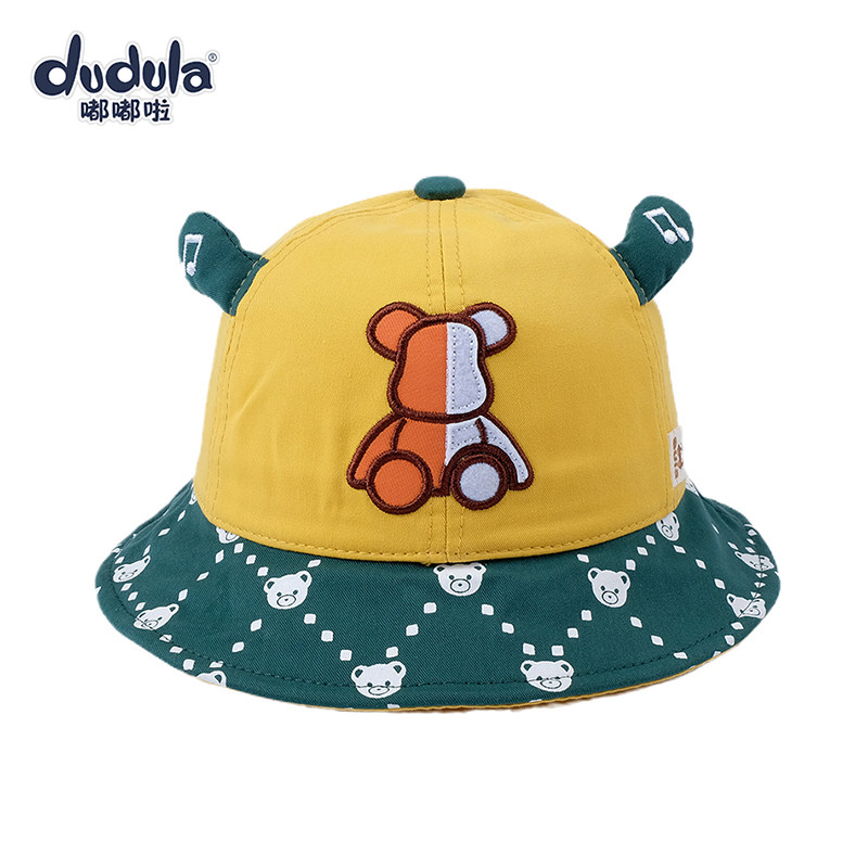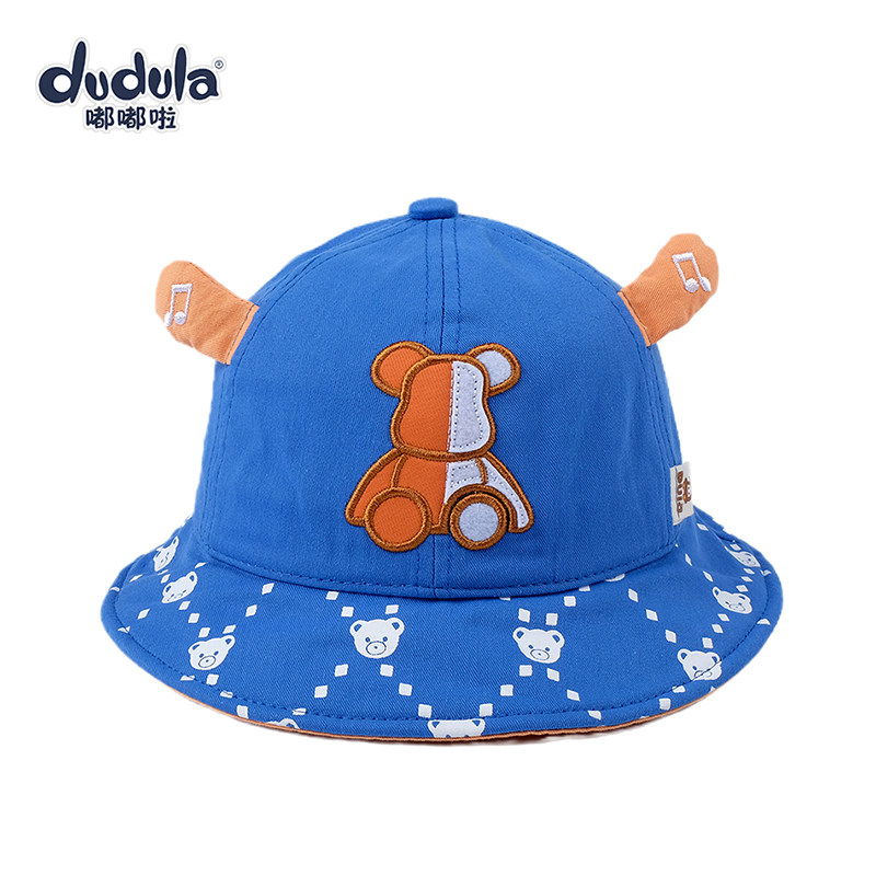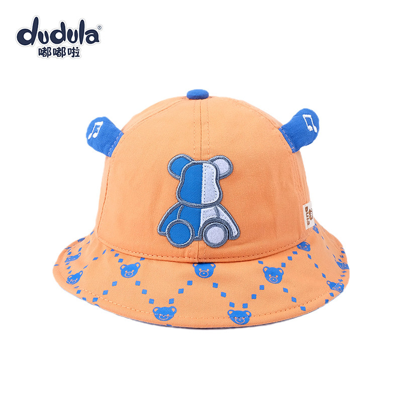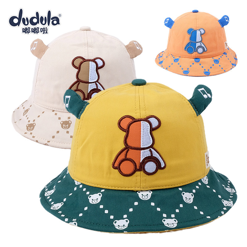嘟嘟啦卡通渔夫帽婴幼儿童帽子防晒棉男女宝宝小熊帽子遮太阳盆帽
