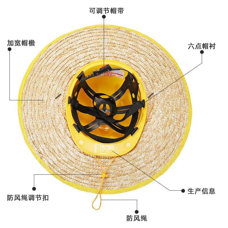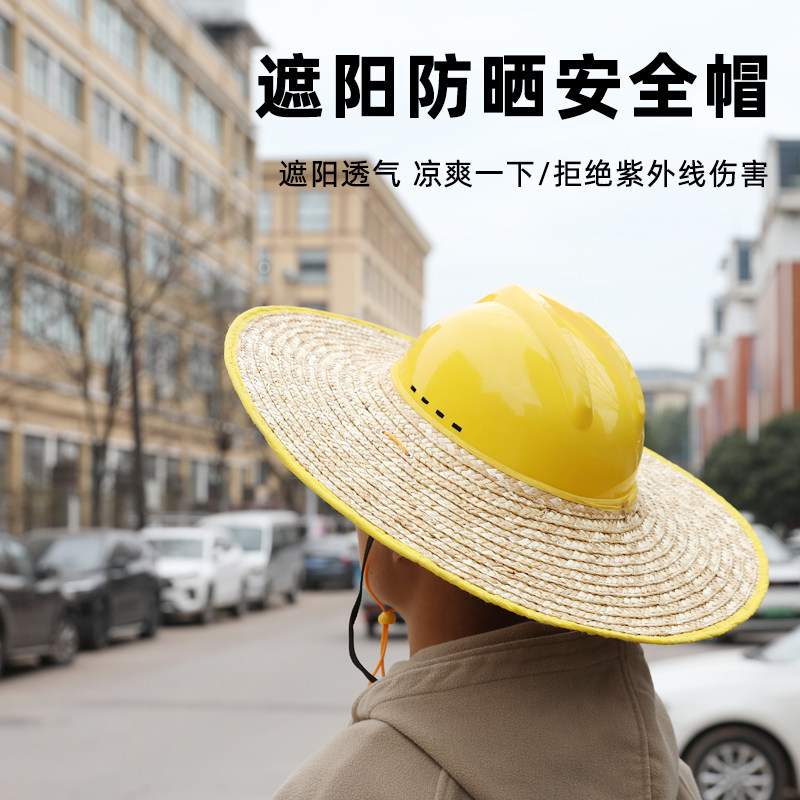 工地草帽麦秆檐遮阳防晒帽无顶工作夏季遮阳神器遮阳空顶帽子隔热