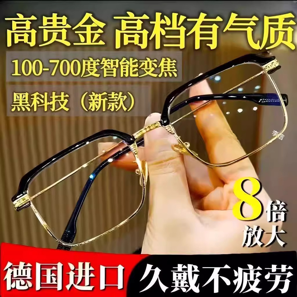 高档老花眼镜中老年高清老花镜男防蓝光老年人女多功能自动变焦镜