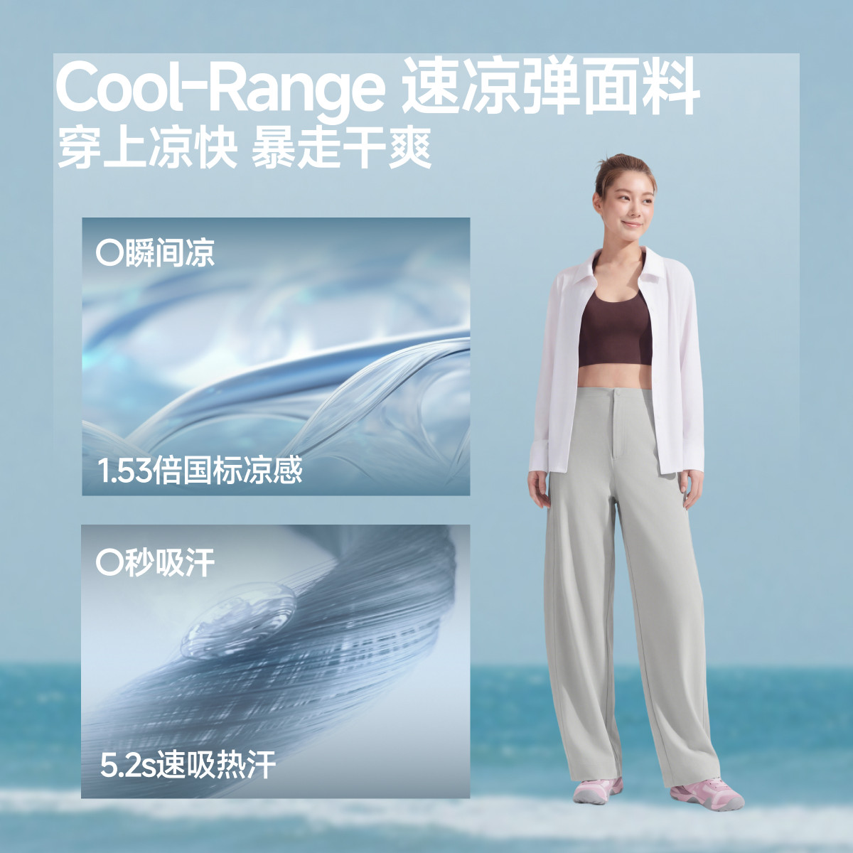 蕉下冰丝阔腿裤女夏薄款速干运动裤夏日凉感空调裤凉凉裤防晒裤子