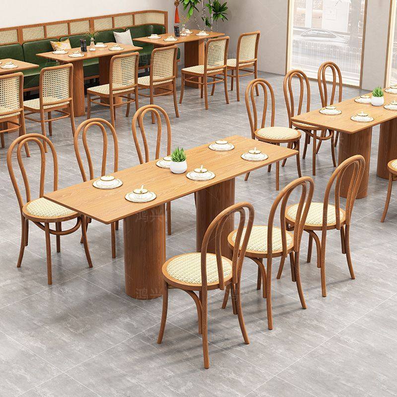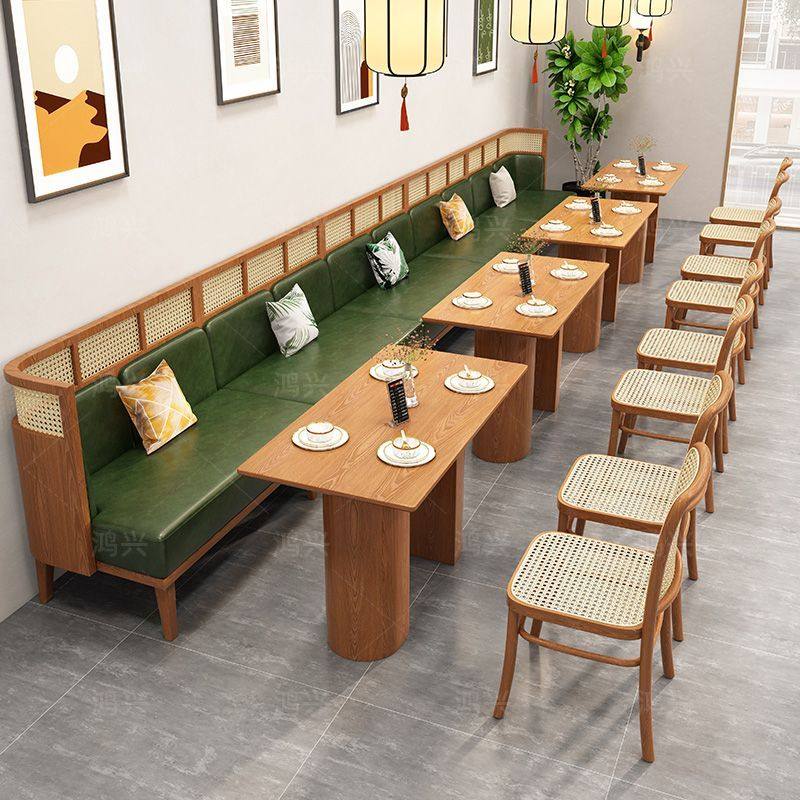 2025新西餐厅卡座沙发定制编藤茶楼连锁店家具饭店商用餐饮实木桌