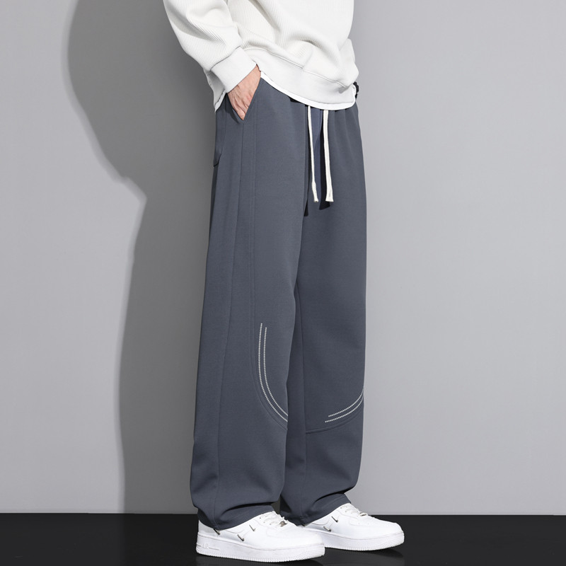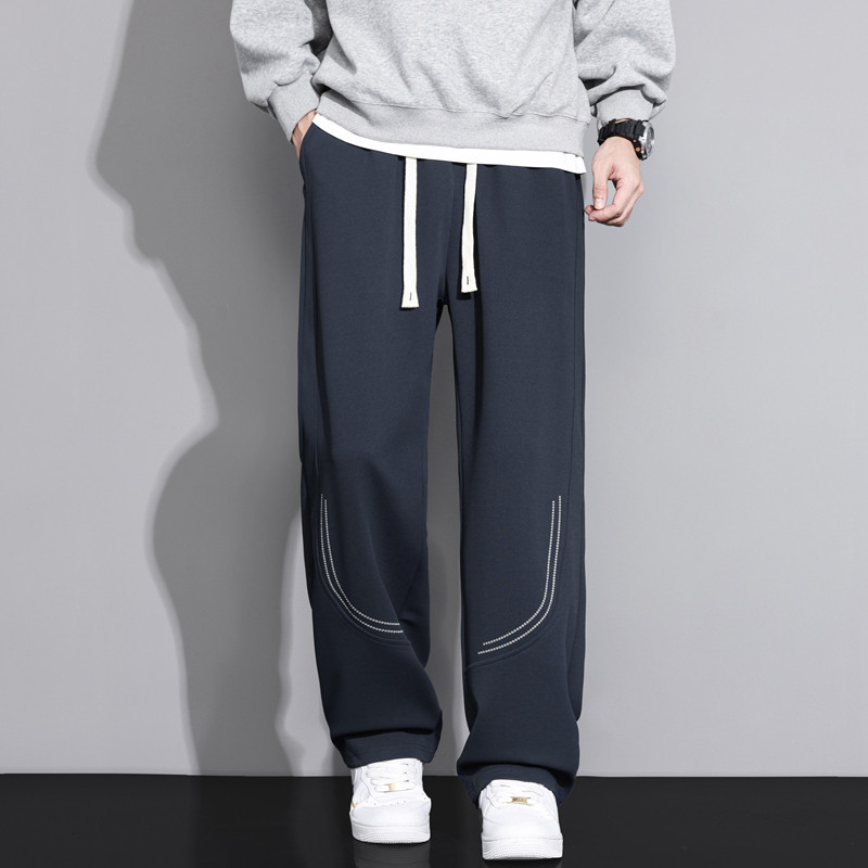 Hipanda你好熊猫秋冬新款宽松卫裤休闲长裤男女同款直筒裤阔腿裤