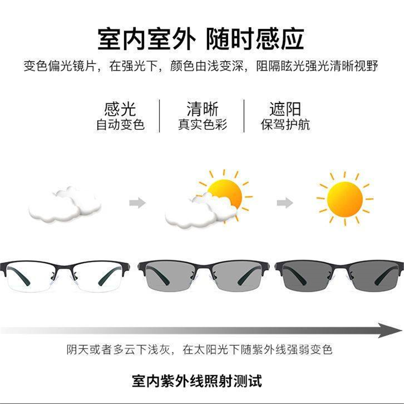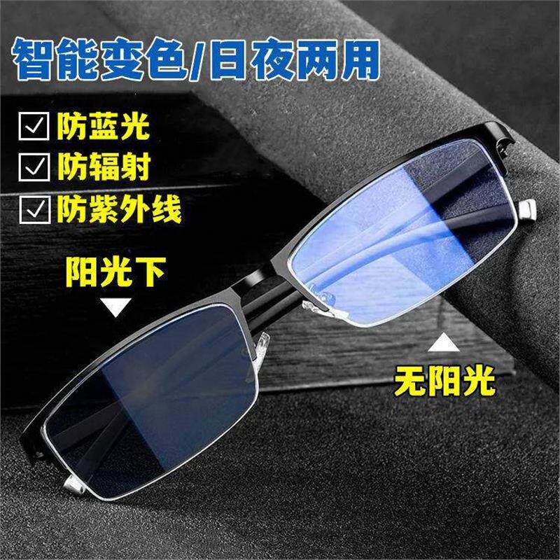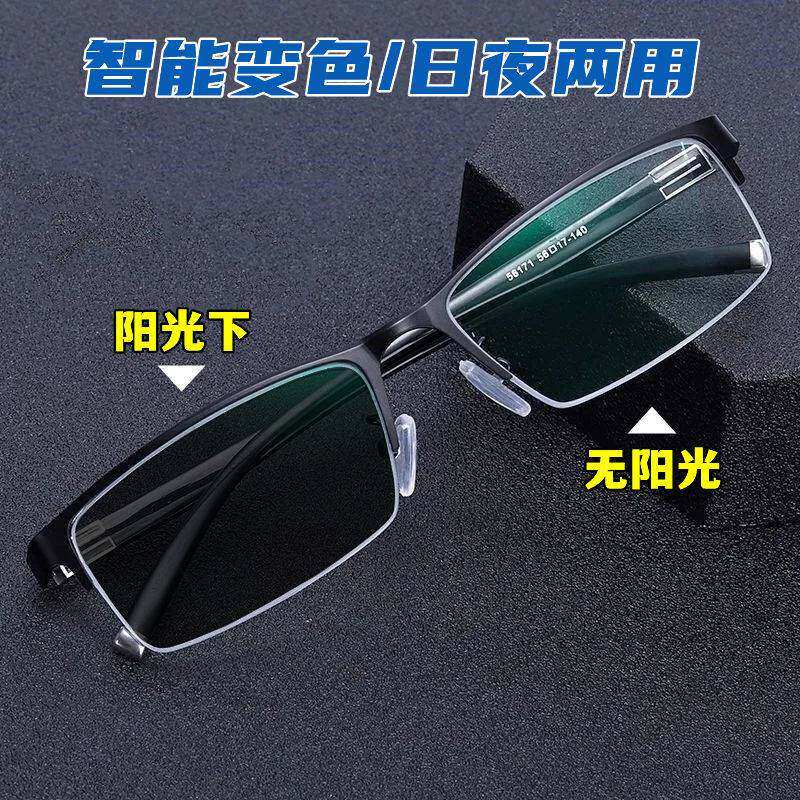 变色防蓝光近视眼镜智能日夜两用板材半框男士款防辐射感光护眼